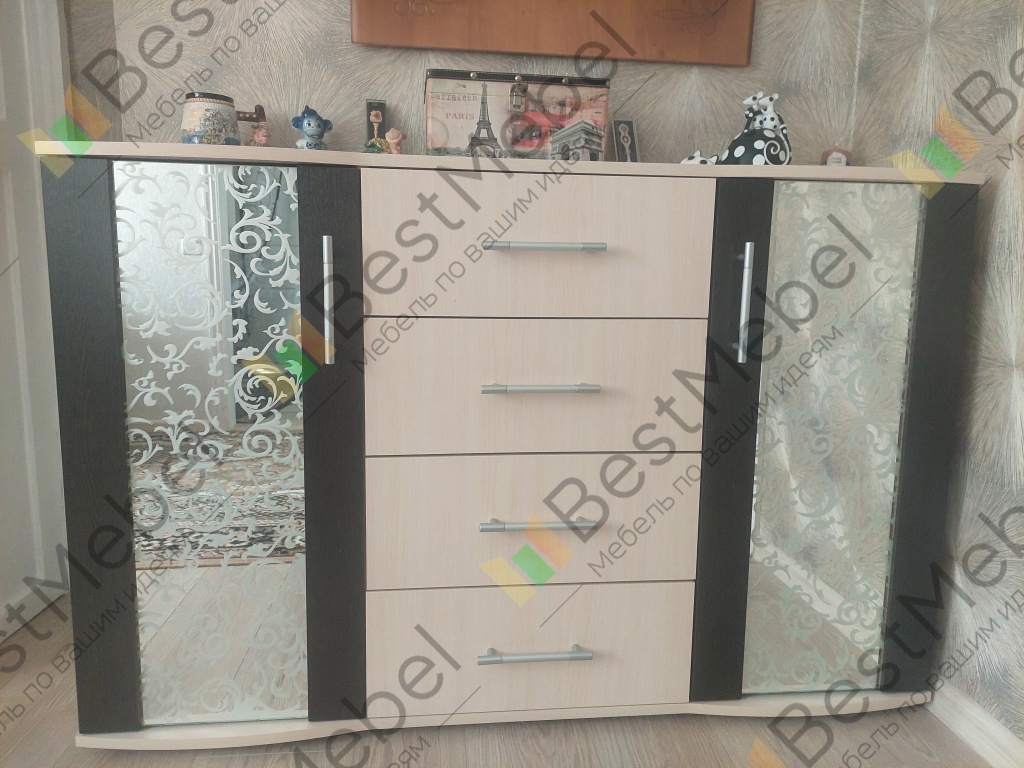 Выбирала комод на БестМебельШоп. Понравился комод Берк-6 BMS.Понравилось, что можно выбрать размер комода и рисунок на стекле.Удобные выдвижные ящики — 4 шт. И 2 отделения по бокам с полками.Комод вписался в интерьер комнаты. Цвет комода подошел к пуфику.И теперь у меня комплект мебели в одном цвете.