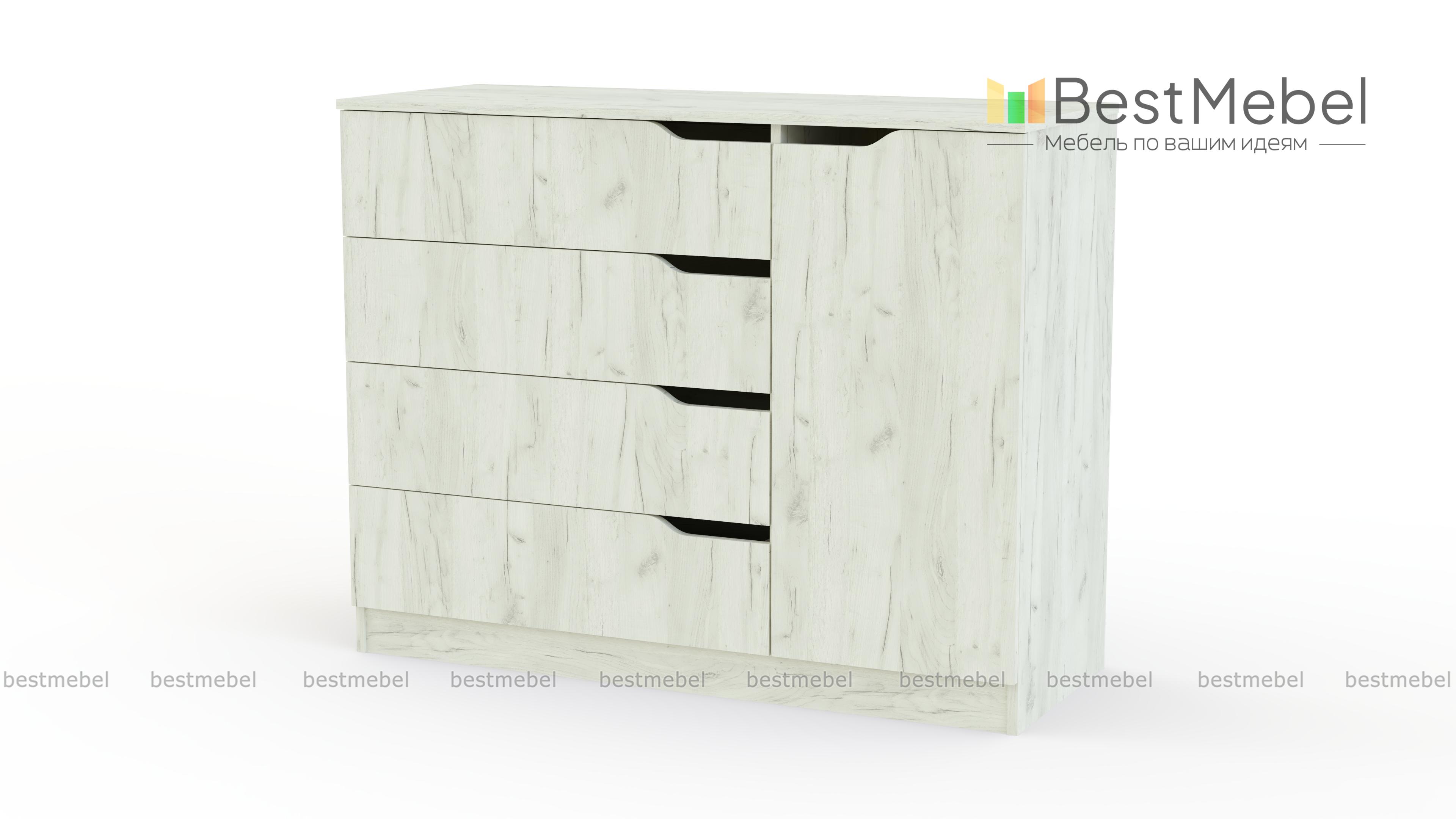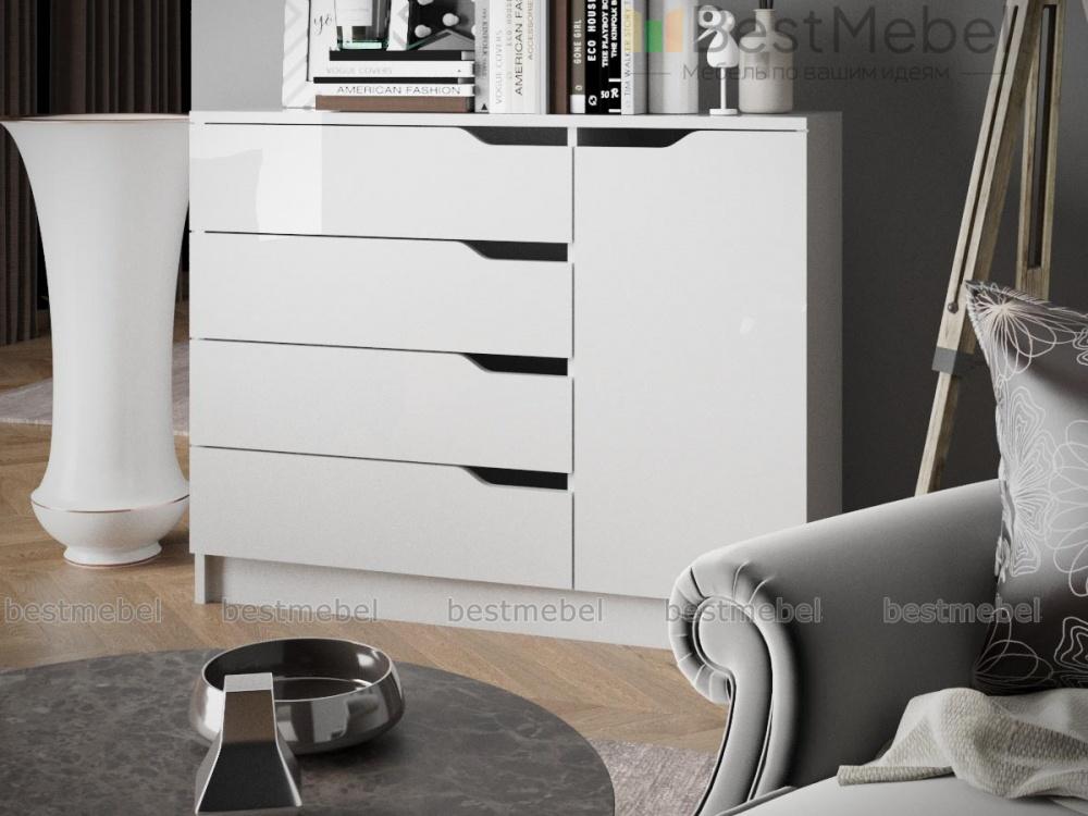 Комод Елисей 120 BMS – универсальная модель в современном стиле, отличный вариант для детской комнаты или спальни. Выполненные в белом цвете фасады легко впишутся в скандинавский или лофт-интерьер. Вместительный комод оборудован четырьмя просторными выдвижными ящиками и распашным отделением с полкой. Дверцы без ручек дополнены функциональными вырезами, эргономичными и безопасными. Купить комод Елисей 120 BMS, подобрав оптимальное цветовое решение, вы сможете в нашем интернет-магазине.