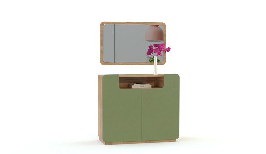 Комод Мирена 9 BMS станет ярким акцентом в интерьере современной квартиры. Гладкий цветной фасад комода скруглен по углам и чуть выступает за периметр, красиво контрастируя с корпусом в древесных тонах. Оборудованная двухдверным распашным отделением с полками и просторной нишей, модель дополнена большим навесным зеркалом, повторяющим формой фасад. Купить комод Мирена 9 BMS приглашаем недорого в наш интернет-магазин с выбором цвета по каталогу.