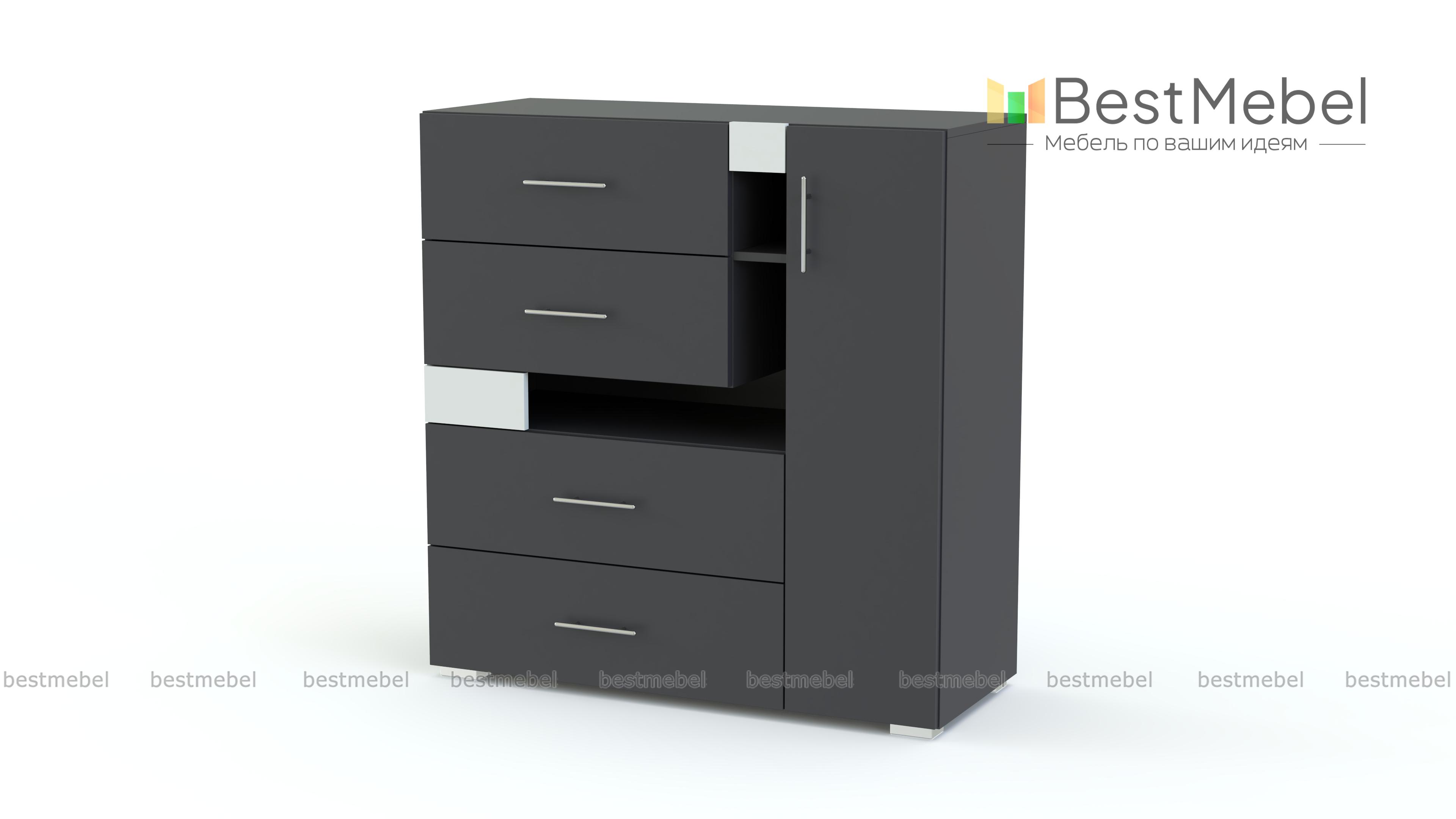 Комод Next NX11 BMS благодаря оригинальному дизайну станет гармоничным дополнением современного интерьера и отлично впишется в молодежные комнаты. Компактная, но вместительная, модель порадует владельцев разными типами отделений – выдвижными ящиками разных размеров, распашным отделением и нишами. Ярким акцентом в домашнем интерьере станут асимметрично расположенные элементы и контрастные вставки. Купить комод Next NX11 BMS и организовать удобное хранение бытовых мелочей вам поможет наш интернет-магазин.