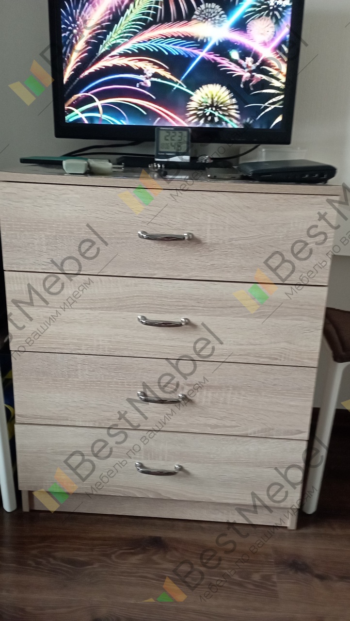 Заказали с вои размеры и цвет. Получили на четвертый день! Упакован хорошо, все детали целые. Собирали сами. Получилось! Все детали промаркированы, что помогает при сборке. Цвет дуб сонома, ручки заменили на заранее приобретенные. Сняла звезду за комплектацию фурнитуры: не хватило двух конфирматов! Спасибо производителю за качественную работу и скорость.