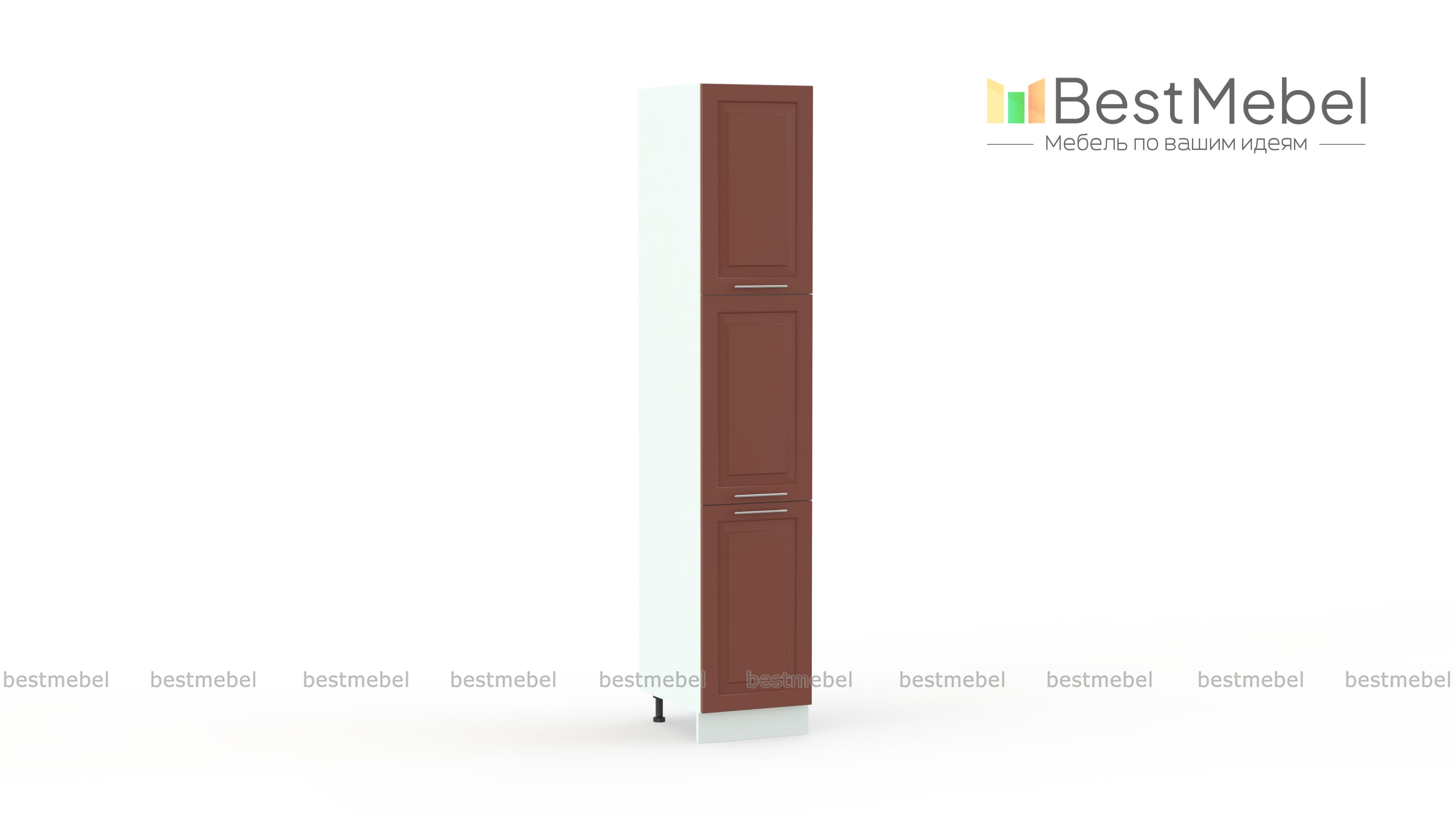 Шкаф-пенал трехдверный Ирен BMS отличается компактными размерами, вместительностью за счет высоты, и гармонично впишется даже в небольшие помещения. Модель выполнена в классическом стиле и оборудована тремя распашными отделениями с полками, которые помогут разместить как нескоропортящиеся продукты, так и габаритную кухонную утварь. Рамочные фасады терракотовых тонов с ручками-скобами дополнят ряд из других модулей серии. Купить шкаф-пенал трехдверный Ирен BMS приглашаем в наш интернет-магазин.