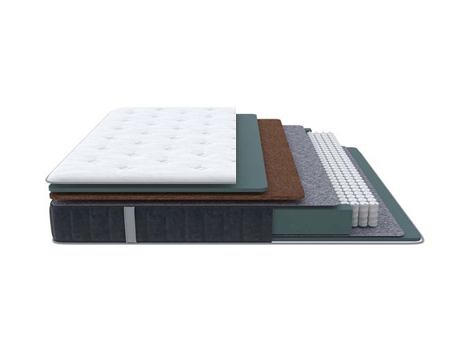 Состав: Меморикс 2см \ Ортофом (ППУ) 2см \ Ортофом (ППУ) высокоэластичный 5 см \ Спанбонд \ EVS620 16см \ Спанбонд \ Ортофом (ППУ) повышенной жесткости 2см \ Короб Ортофом (ППУ).