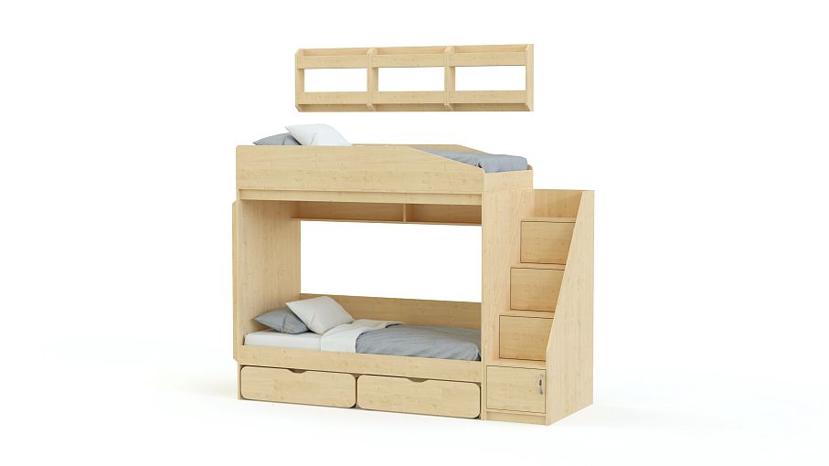 Двухъярусная кровать Миф 10.3 с полками BMS – это высокое качество, доступная цена и комфортные спальные места для двух детей при экономии пространства. Удобное размещение книгам и игрушкам обеспечат полка под верхним ярусом, боковой открытый стеллаж и навесные полочки оригинальной конструкции. Для безопасности комплект оснащен бортиками и приставной лестницей со ступеньками-ящиками. Купить двухъярусную кровать Миф 10.3 с полками BMS вы сможете в нашем интернет-магазине по доступной цене.