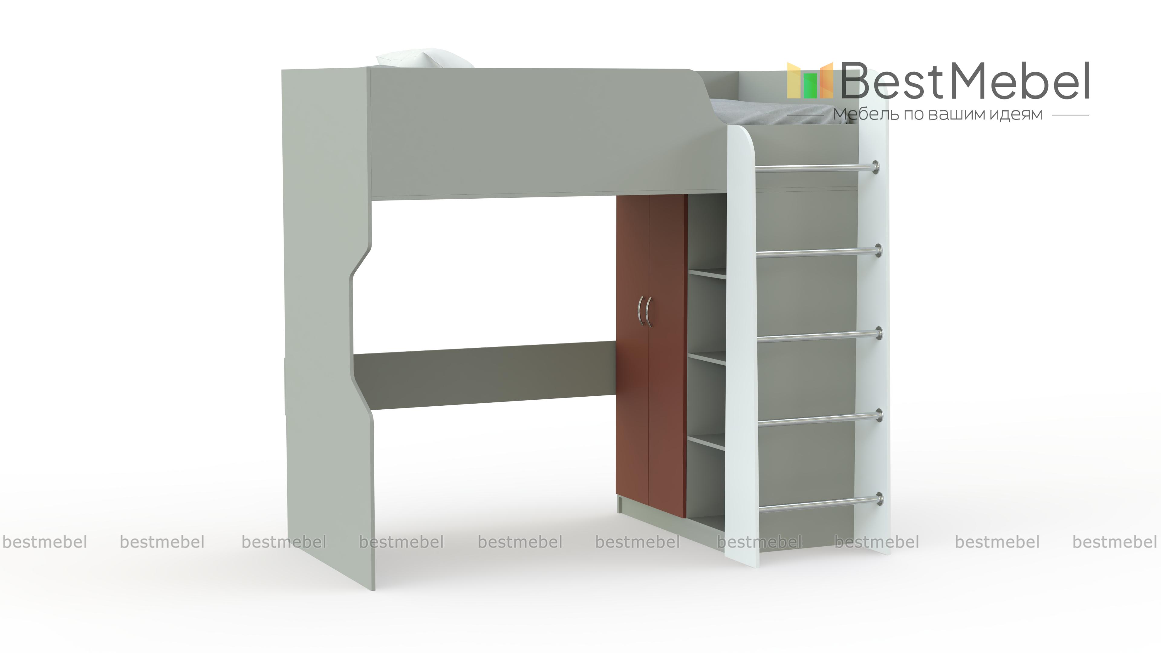 Кровать-чердак детская Дарина-03 BMS представляет собой многофункциональную конструкцию, незаменимую в условиях экономии полезной площади. Яркая и современная модель станет отличным выбором для детских комнат, объединив спальное место и удобную систему хранения. Расположенная на втором ярусе кровать с бортиком оборудована устойчивой лестницей, а на первом располагаются стеллаж для книг и игрушек и распашной платяной шкаф. Купить кровать-чердак детскую Дарина-03 BMS вы сможете в нашем интернет-магазине, подобрав оптимальное цветовое решение.