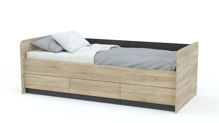 Кровать Полли-9 BMS гармонично впишется в современные интерьеры и станет отличным вариантом для детской. Компактная модель выполнена в популярных оттенках под массив дерева в сочетании с контрастными серыми вставками. Комфортное спальное место подарит ребенку полноценный сон, а для размещения постельных принадлежностей предусмотрены три выдвижных ящика в основании. Купить кровать Полли-9 BMS по лучшей цене вы сможете в нашем интернет-магазине.