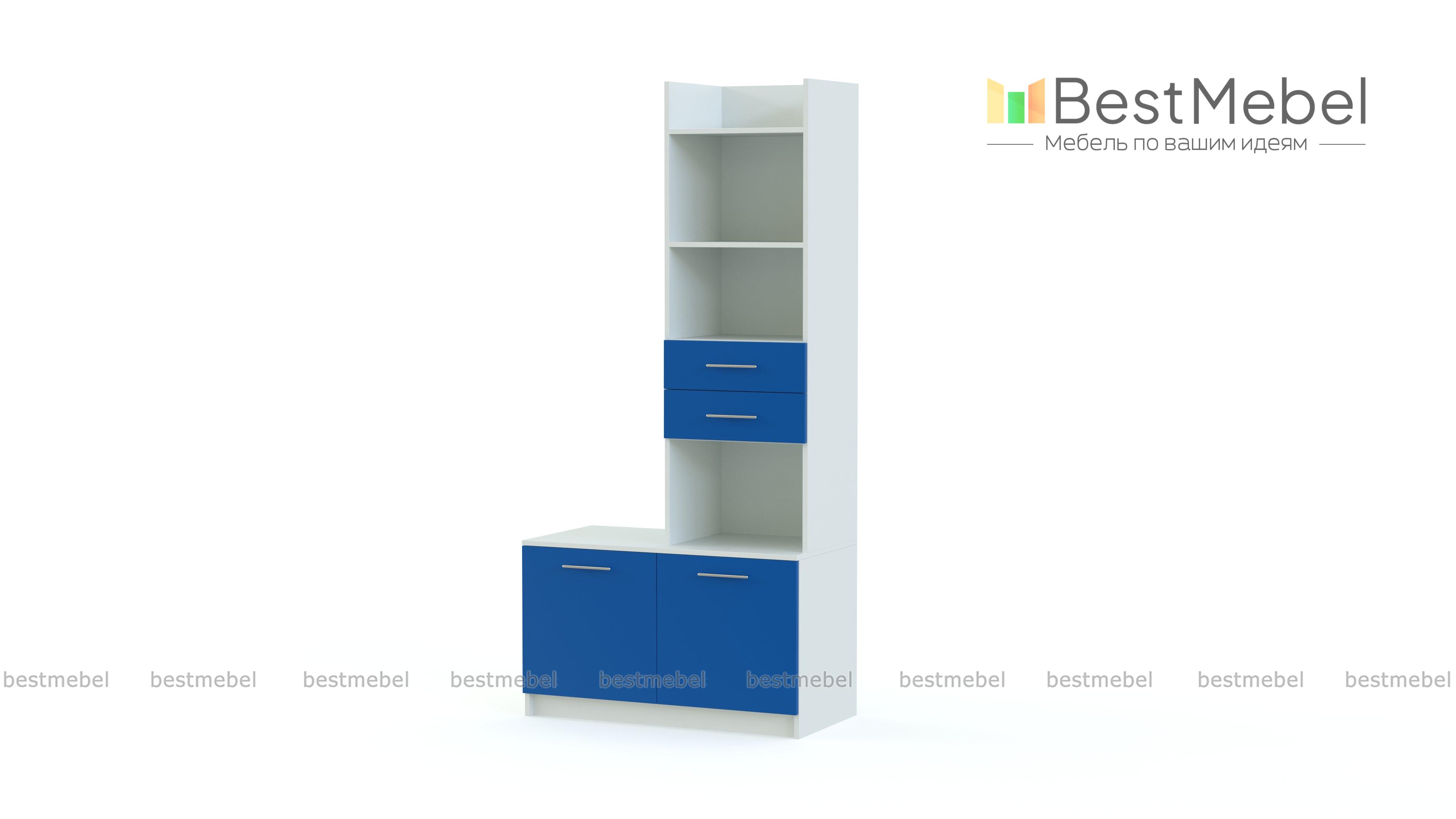 Совмещенный с двухдверной тумбой, стеллаж Т-85 BMS станет оптимальным решением для детских и подростковых комнат. Светлая расцветка сделает помещение визуально больше, а широкая гамма ярких вставок позволит подобрать вариант и для мальчика, и для девочки. Стеллаж для удобного хранения вещей ребенка оборудован вместительными открытыми полками, выдвижными ящиками и распашными отделениями. Фасады выполнены в модном глянце, современны, долговечны и просты в уходе.
