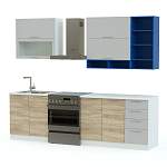 Кухня София микс BMS – компактная кухня современного дизайна, которая сразу привлекает внимание гармоничным сочетанием классических оттенков под массив дерева и контрастных тонов. Для максимального удобства размещения бытовой техники, посуды и столовых приборов модель оборудована в нижней части тремя тумбами – под мойку, с распашными отделениями и выдвижными ящиками. Навесные элементы – открывающиеся вверх ящики и открытые полки. Купить кухню София микс BMS по лучшей цене приглашаем в наш интернет-магазин.