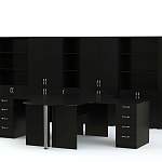 Компактный офисный комплект, где удобно разместятся сразу 4 человека. Здесь без проблем можно организовать рабочее место с персональным компьютером, ящиками для хранения документов каждого работника. Кроме того, в комплект входят стеллажи и шкафы для папок, канцелярии, книг и одежды.