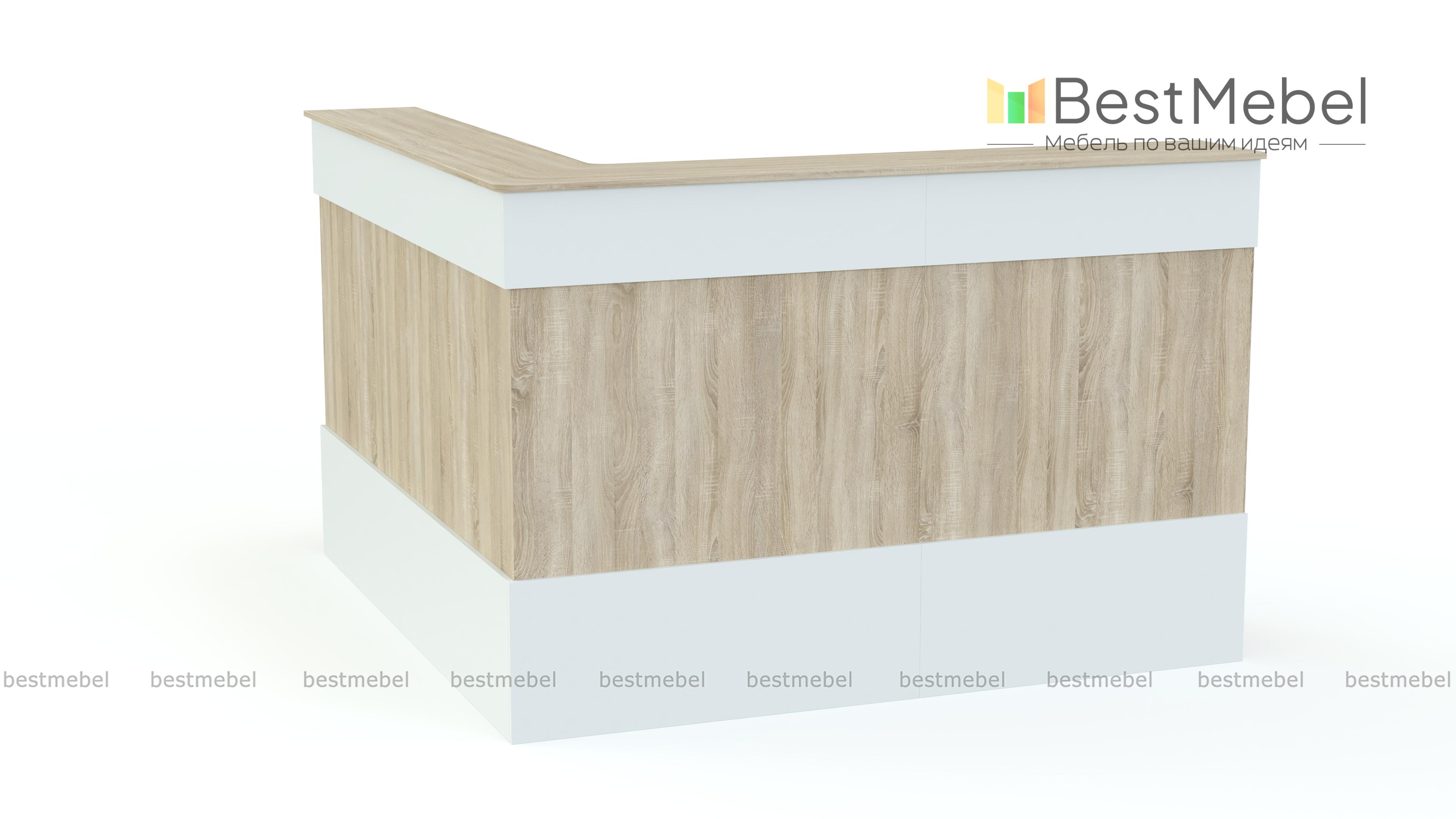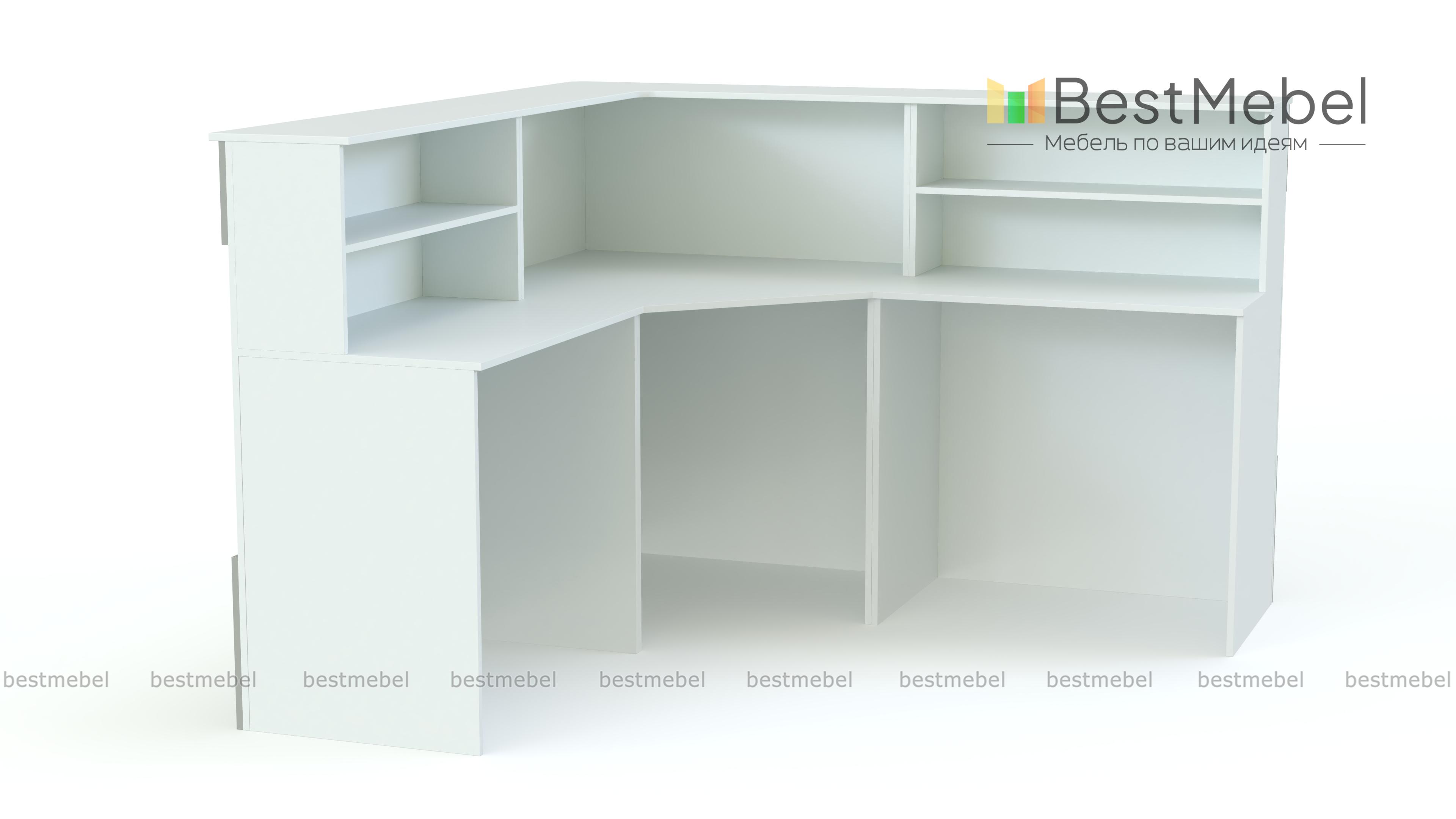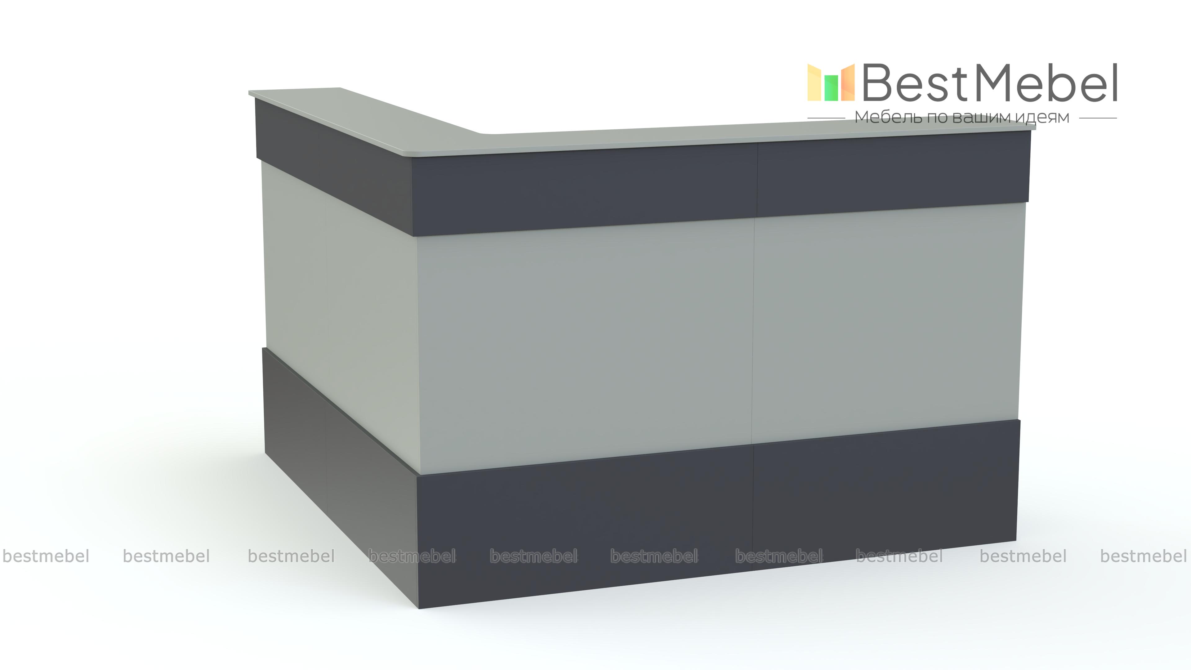 Ресепшен Рейна № 14 BMS объединил три модуля из современной серии – угловой и два прямых. Простая и функциональная, композиция оборудована широкой внешней столешницей для посетителей и внутренней – для администратора. Выполненная в универсальном белом цвете, стойка декорирована фасадными планками контрастного серого цвета и сразу привлекает к себе внимание. Купить ресепшен Рейна № 14 BMS по доступной цене и оборудовать комфортную приемную вам поможет наш интернет-магазин.