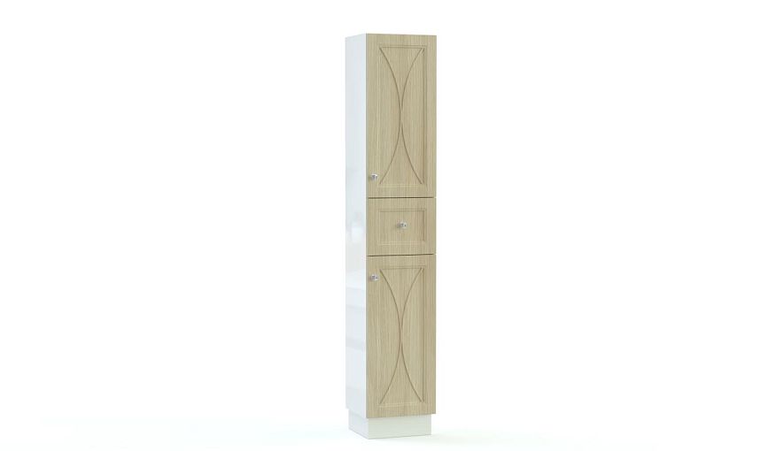 Шкаф-пенал в ванную Лилея 2 BMS – это элегантная современная классика для комфортного интерьера. Напольная модель на высоком цоколе выполнена во влагостойком бежевом оттенке и декорирована по фасаду оригинальной фрезеровкой. Два распашных отделения с полками и глубокий выдвижной ящик легко решат проблему хранения большого количества вещей – от уходовой косметики до текстиля. Купить шкаф-пенал в ванную Лилея 2 BMS вы сможете на сайте нашего интернет-магазина.