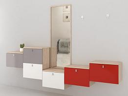 Прихожая с подвесными ящиками и зеркалом Квик BMS
