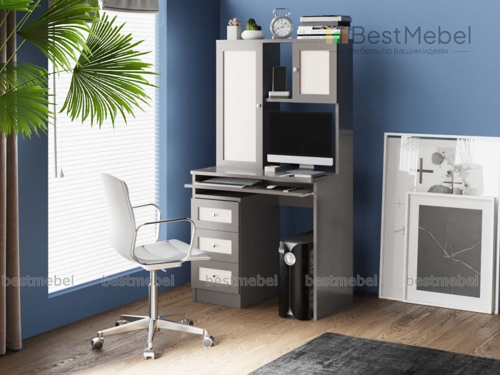 Компьютерный стол Млайн 36 BMS с тремя выдвижными ящиками, нишей и двумя шкафчиками для хранения позволит достать учебник, ручку или папку с бумагами, не вставая с места. На выкатной панели можно разместить клавиатуру и мышку, максимально освободив рабочую поверхность. Рамочные фасады в контрастном оформлении смотрятся строго, но при этом актуально. Столешница со скругленными углами, стол со скошенным вырезом под плинтус 7*3.
