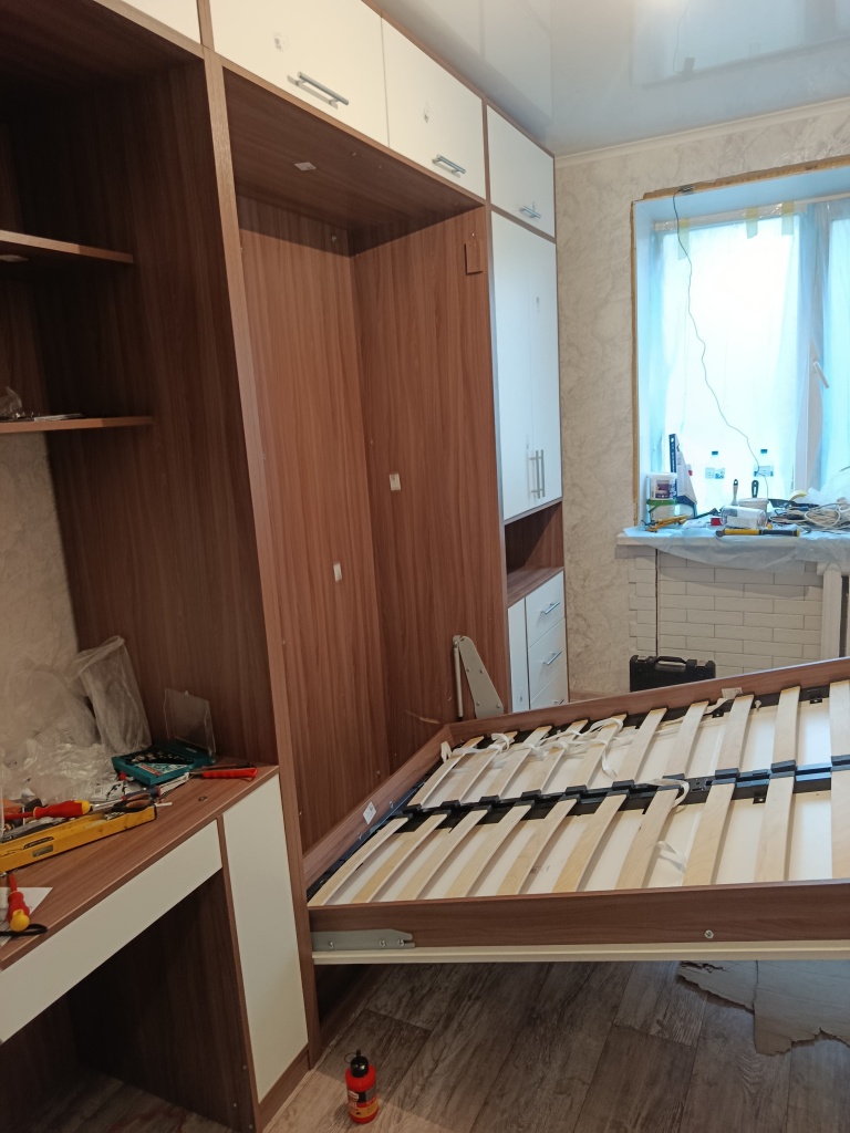 Отличный вариант для студии, где хочется впихнуть всё - и нормальную кровать, и рабочий стол, и много мест для хранения... Надоело спать на диване! Поэтому я закала этот проект по своим размерам, в светлых тонах и очень довольна результатом! 👍Разбирается / собирается легко, постельное и подушки остаются внутри! Очень вместительные антрисоли и шкафы. Единственный огромный минус - это гигантская подушка с дивана, которую некуда деть, под диван она не влазит, приходится ей стену подпирать 🙄 тут нужна доработка 🤔 На подаренные от покупки баллы потом взяла здесь журнальный столик!