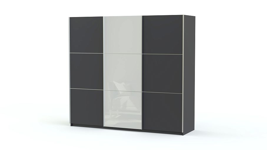 Вместительная трехстворчатая модель Элит 42 BMS позволит максимально комфортно организовать пространство в просторной гостиной или спальне и разместить все необходимые предметы гардероба. За раздвижными подвесными дверями скрыты платяное со штангой и бельевое с полками отделения. Лаконичные фасады модного темного оттенка декорированы эргономичными профиль-ручками и вставкой из стекла в цветной пленке. Стильный и и практичный, шкаф отлично впишется в современный интерьер.