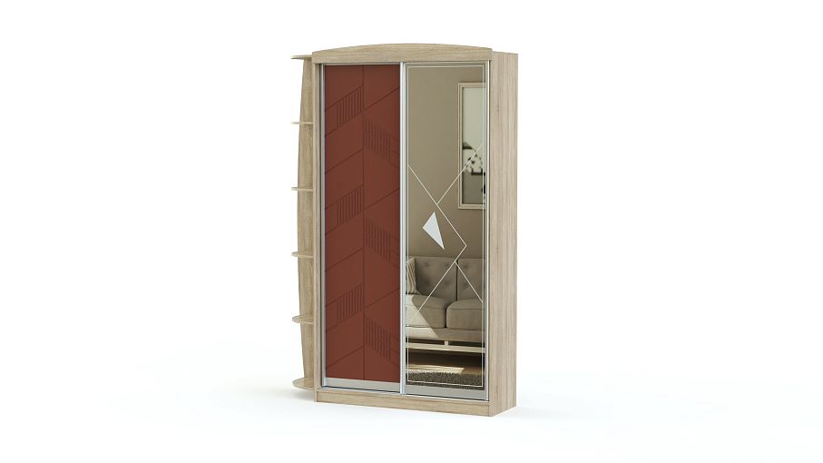 Шкаф-купе Ф-549 BMS с двумя дверями, оформленными МДФ с фрезерованным рисунком и зеркалом, преобразит помещение и придаст интерьеру презентабельности и оригинальности. Удобная система хранения может быть укомплектована в нескольких вариантах на выбор. Так можно подобрать модель с декоративным карнизом, с дополнительными выдвижными ящиками или полками. Боковые открытые полки придают шкафу индивидуальности и позволяют разместить больше вещей или предметов интерьера. Купить Шкаф-купе Ф-549 BMS по привлекательной цене можно на сайте нашего интернет-магазина.