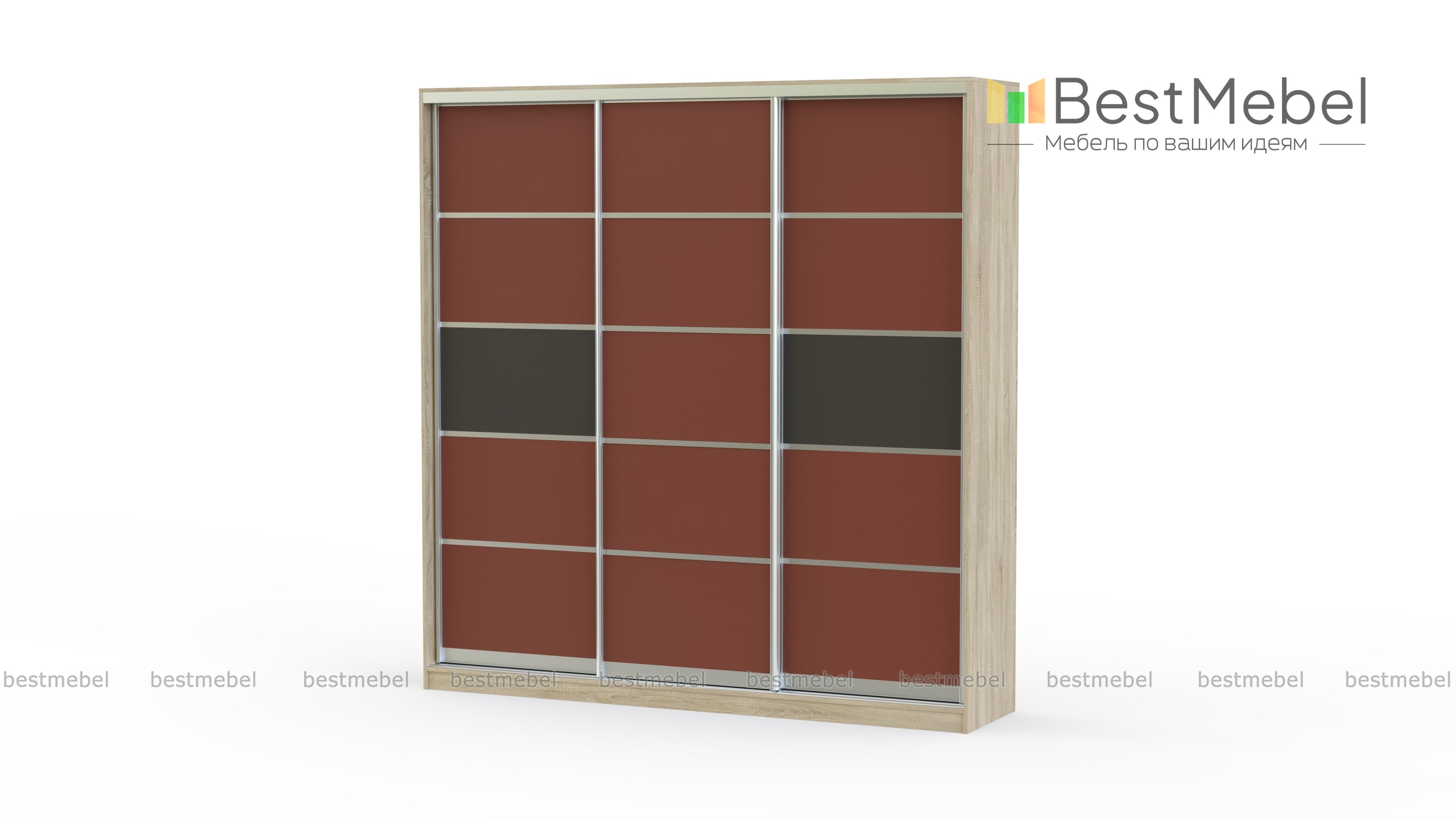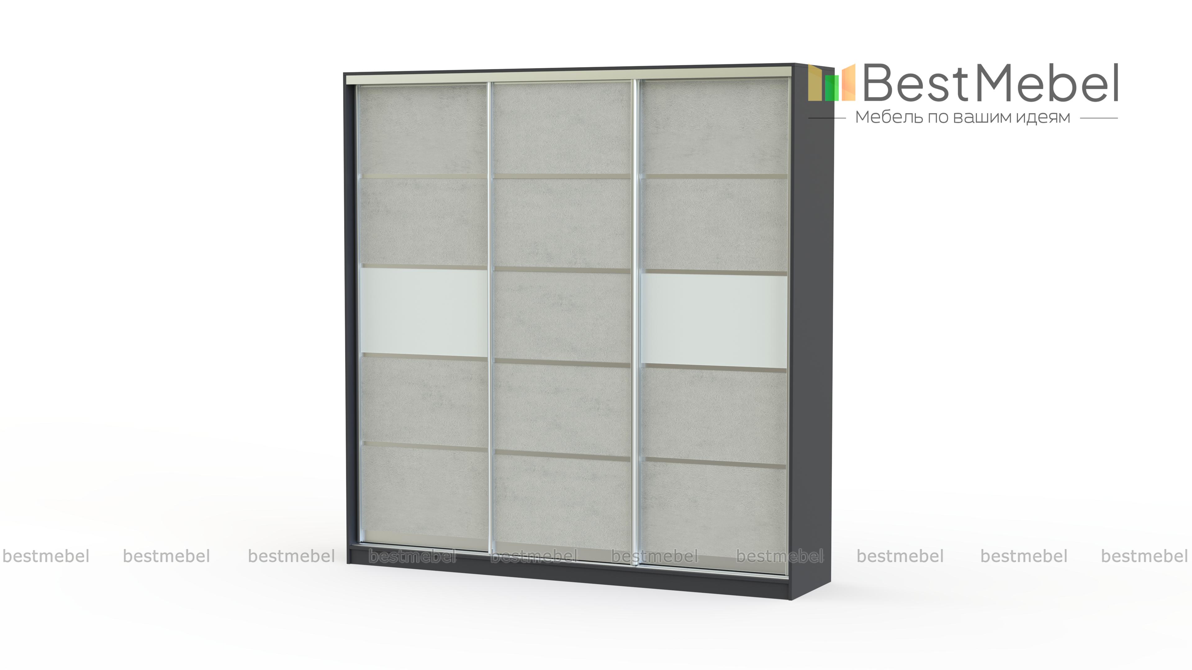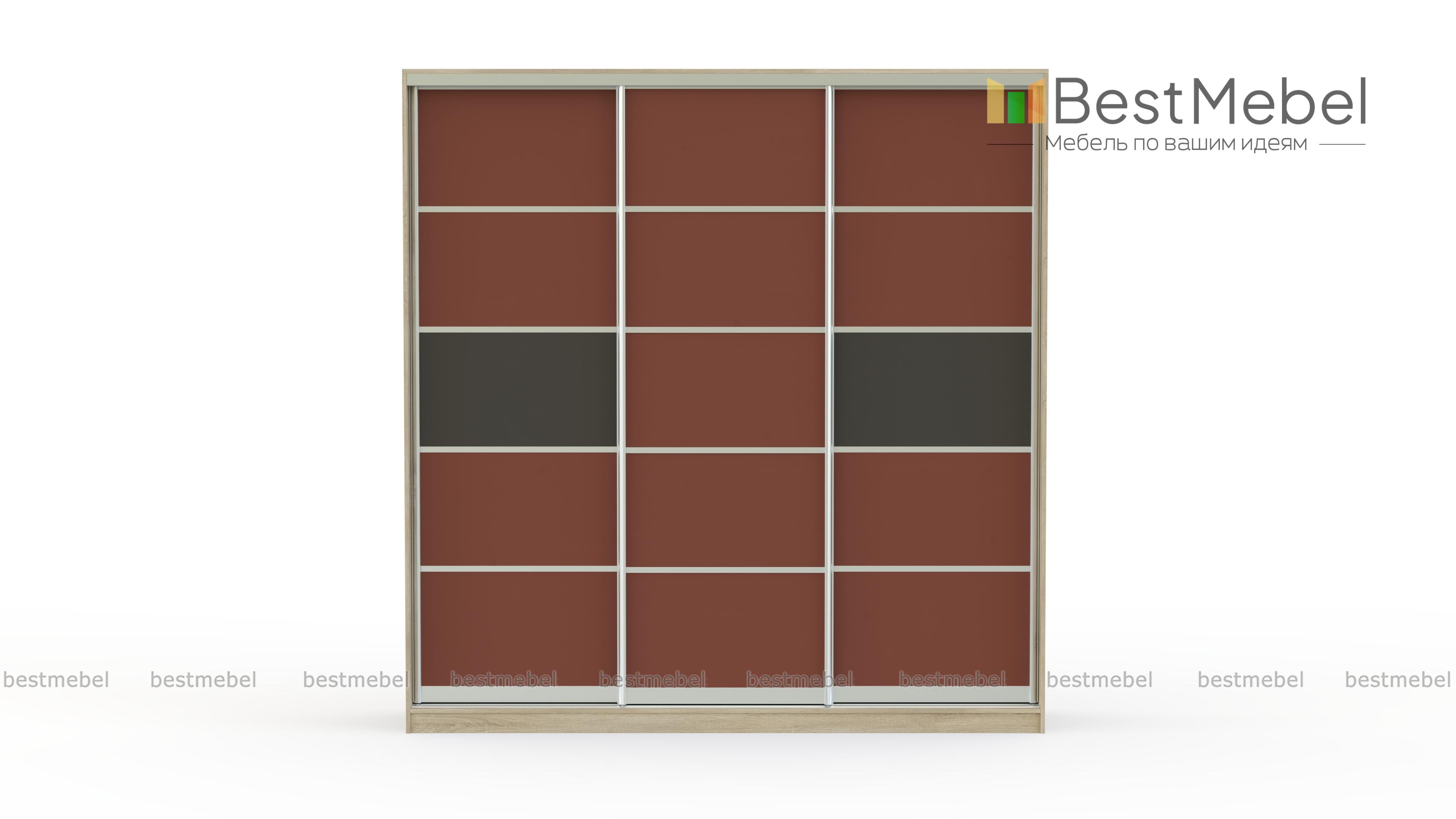 Шкаф-купе Стандарт КР BMS представлен в виде вместительной трехдверной конструкции. Дизайн поделенного на небольшие секции фасада может быть изготовлен в зависимости от пожеланий из цветного стекла или зеркал в любой понравившейся комбинации. Шкаф отлично впишется в любой интерьер и поможет компактно разместить вещи. Для хранения предусмотрена система полок, выдвижных ящиков и штанга для вешалок. Качественная фурнитура и комплектующие бесшумного открывания делают мебель удобной и простой в эксплуатации.