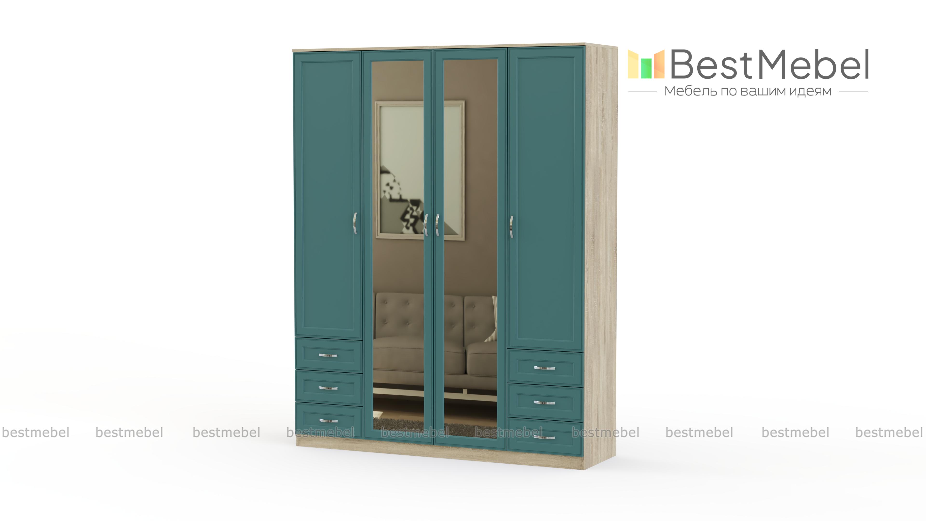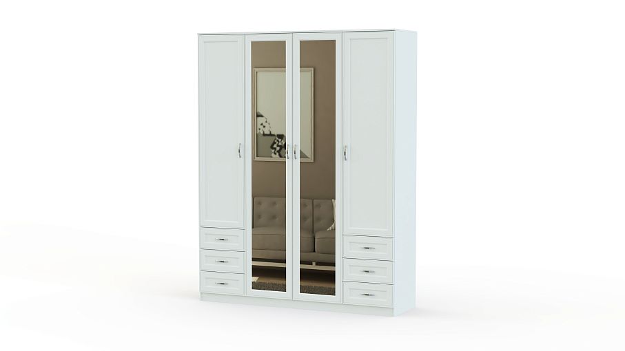 Распашной шкаф Габриэлла BMS с рамочными фасадами светлых тонов выполнен в классическом стиле. Удобная система хранения четырехдверной модели включает в себя распашные отделения со штангой и бельевыми полками, а также шесть выдвижных ящиков для мелочей. Зеркала в центральной части визуально облегчают интерьер, незаменимы для примерки одежды и ухода за собой. Купить распашной шкаф Габриэлла BMS для меблировки спальни вы сможете в нашем интернет-магазине.