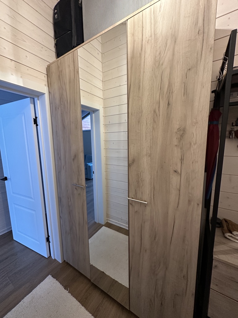 Удобный шкаф, вместительный. Единственный мой недочёт - я побоялась выбрать шкаф полностью цвета венге. И моё пожелание производителю, ответверстия для ручек делать на 1 см дальше от края. Я купила маленькие силиконовые наклейки, иначе зеркало бы давно разбилось.