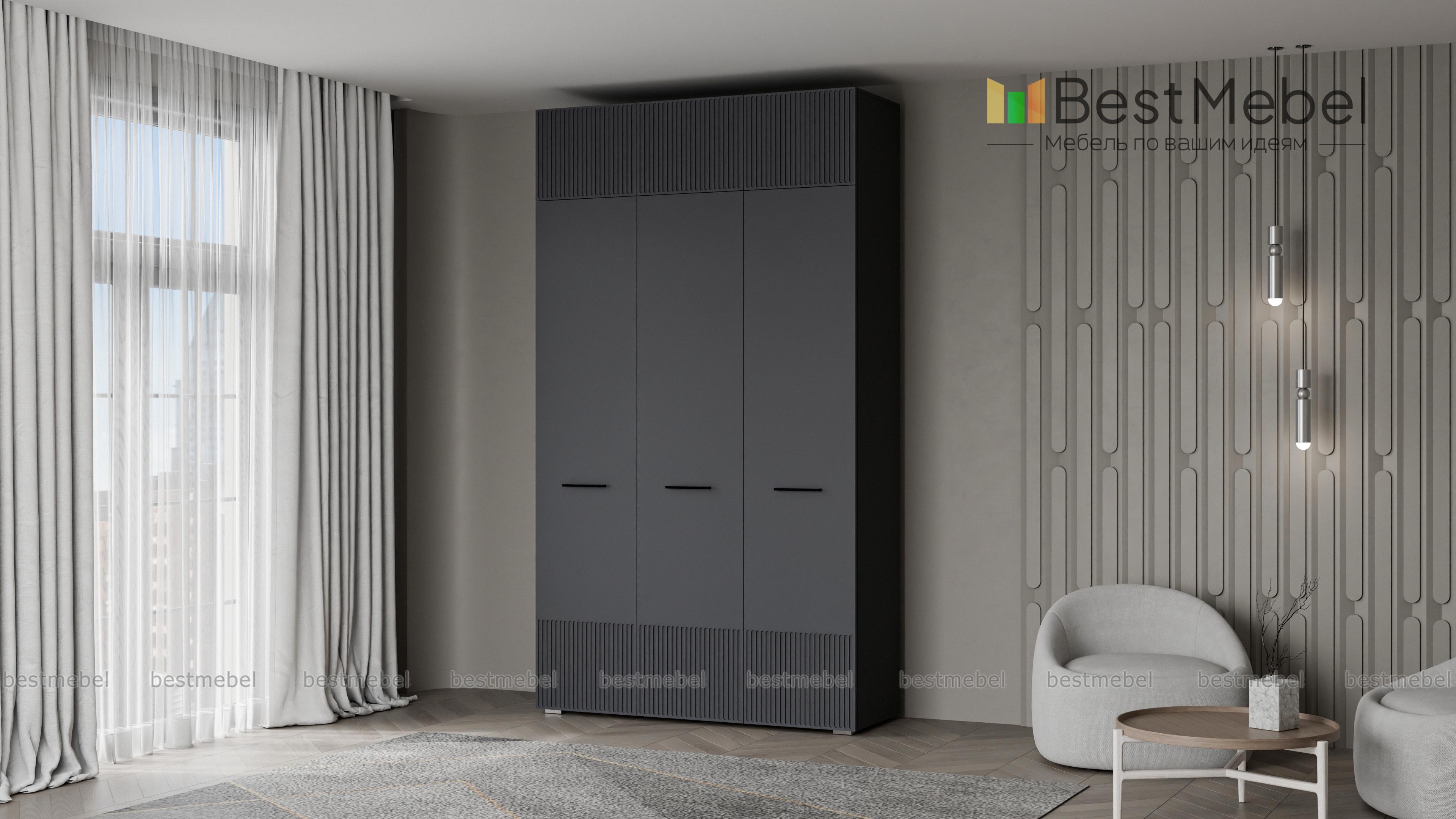 Шкаф распашной Декарт 9 BMS выполнен в современном классическом стиле. Нижняя часть фасада и дверцы антресоли украшены лаконичным стильным рельефом, в роли акцента выступают поперечные ручки-скобы. Платяное отделение справа и ряд бельевых полок слева — оптимально для хранения базового гардероба в спальне, детской комнате или прихожей. Купить шкаф распашной Декарт 9 BMS приглашаем в наш интернет-магазин с возможностью выбора габаритов, цвета и фурнитуры.