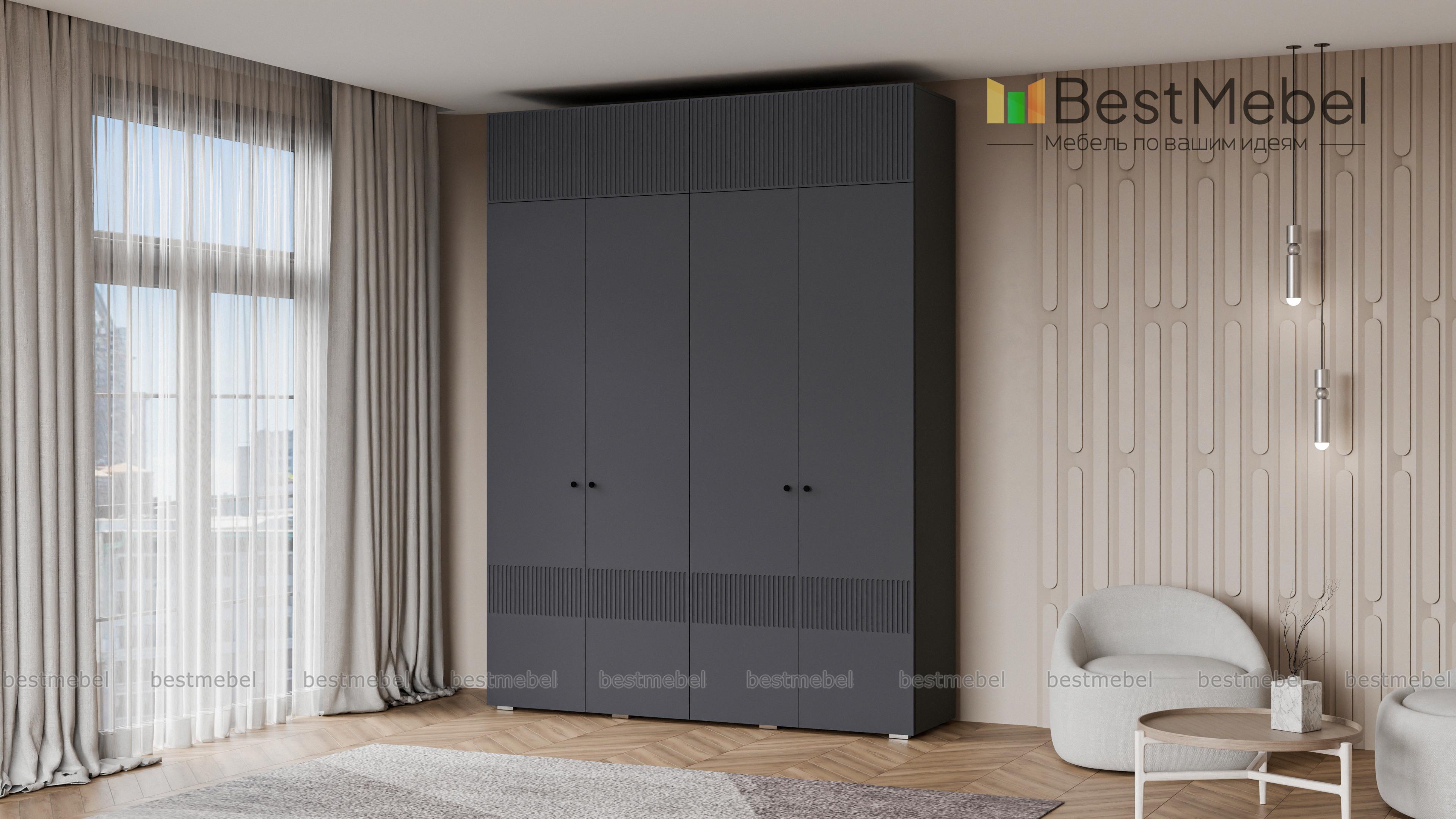 Шкаф распашной Джосс 10 BMS с четырьмя дверцами и антресолью можно разместить в разных комнатах: небольших спальнях, прихожих и детских. Оригинальные оттенки корпуса и фасада создают комфортную атмосферу в помещении, стильный акцент в отделке — фрезерованный орнамент. За дверцами справа скрыты штанга и полка, а слева — узкая платяная секция и бельевой стеллаж. Купить шкаф распашной Джосс 10 BMS с выбором размеров, цвета и фурнитуры вы сможете недорого в нашем интернет-магазине.