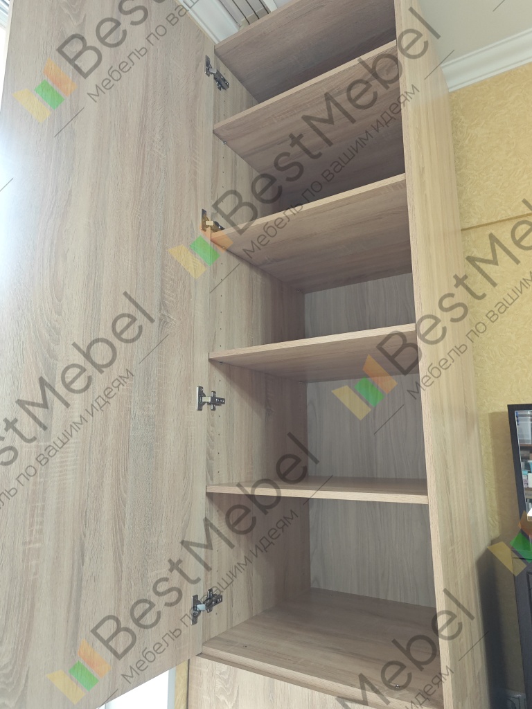 Заказ 00000654962, изделие Зодиак 2 двери Шкаф распашной (400х2200х500) (Бельевой отсек (4 полки) (1)Шкаф заказала по индивидуальным размерам.В дополнение к основному кухонному гарнитуру. Очень переживала , что цвет фасадов не совпадает с уже сделанной 2 года назад кухне в другой компании.Оказывается, зря, всё отлично подошло по цвету!!!Изготовили быстро, перед отправкой заказа на изготовление, менеджер очень подробно расспросила , уточнила много нюансов, кое-что даже посоветовала, т.к. я женщина, не особо понимаю например, в элементах фурнитуры и других мебельных штуках.Изготовление было около 10-14 дней. Быстро привезли, без проблем и во время.Сборку заказывала у компании-партнера. Очень быстро и качественно собрал мастер. Большой респект всем работникам Бестмебельшоп! 👍Качество изделия выше всяких похвал 👏