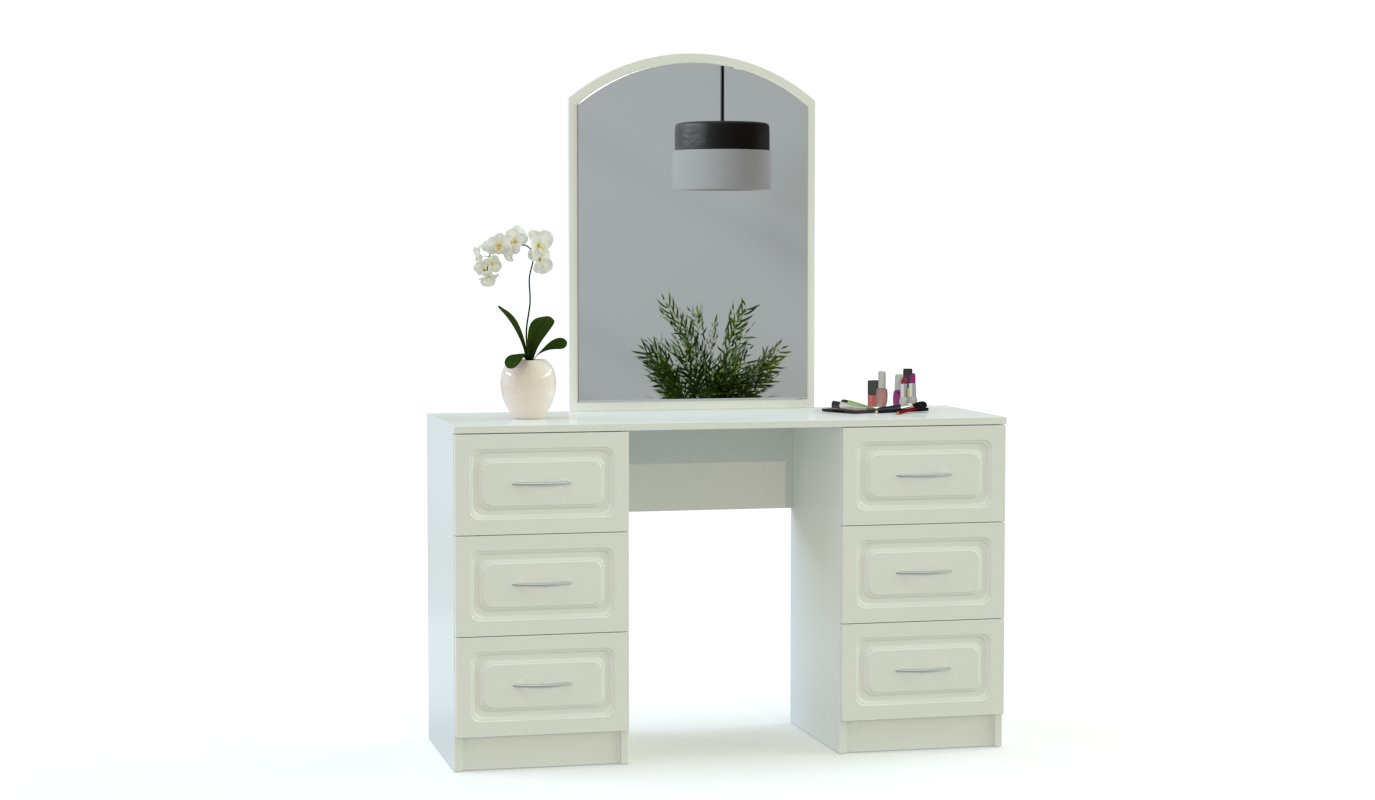 Спальня Ульяна BMS выполнена в классическом стиле и включает в себя все необходимое для комфортного отдыха, ухода за сбой и хранения вещей. Элегантный гарнитур состоит из кровати с фигурно вырезанным изголовьем, прикроватной тумбы, высокого бельевого комода, трехдверного распашного шкафа для одежды и двухтумбового туалетного столика с большим зеркалом. Фасады всех предметов выполняются в древесных оттенках на выбор и декорированы фрезеровкой. Купить спальню Ульяна BMS вы сможете в нашем интернет-магазине по приятной цене.