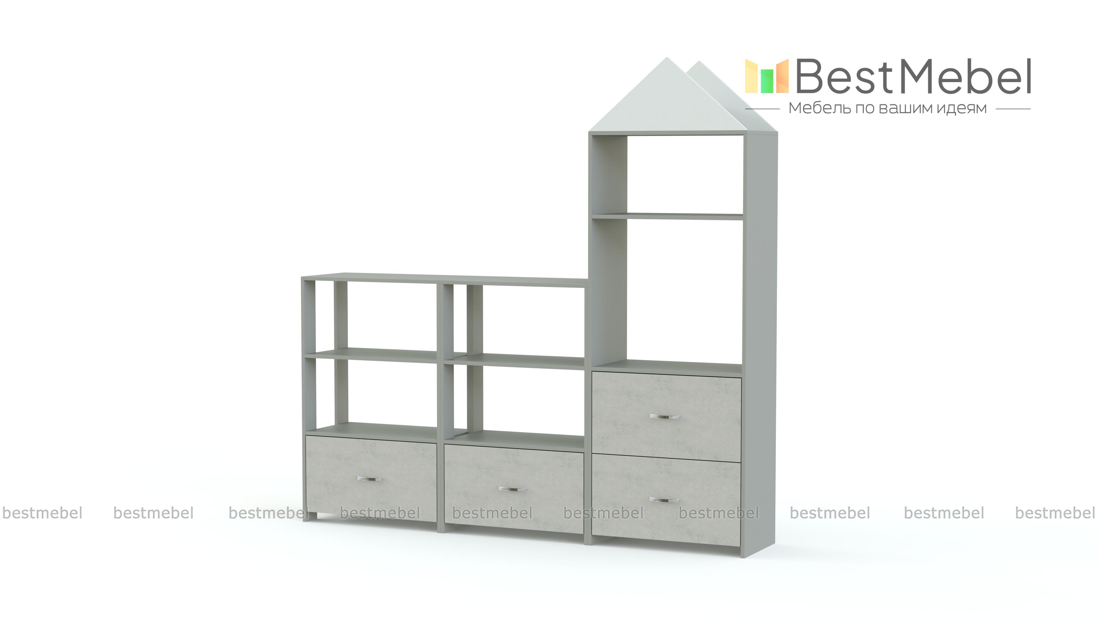 Стеллаж Астра 13 BMS включает в себя три модуля – два низких и высокий в форме башенки. Удобная система хранения из просторных открытых секций и выдвижных ящиков позволяет разместить игрушки, книги, поделки и материалы для творчества. Модель отличается красочным современным дизайном и надолго сохранит эстетичный вид благодаря использованию износостойких и экологичных материалов. Купить стеллаж Астра 13 BMS для меблировки игровой детской комнаты вы сможете в нашем интернет-магазине.