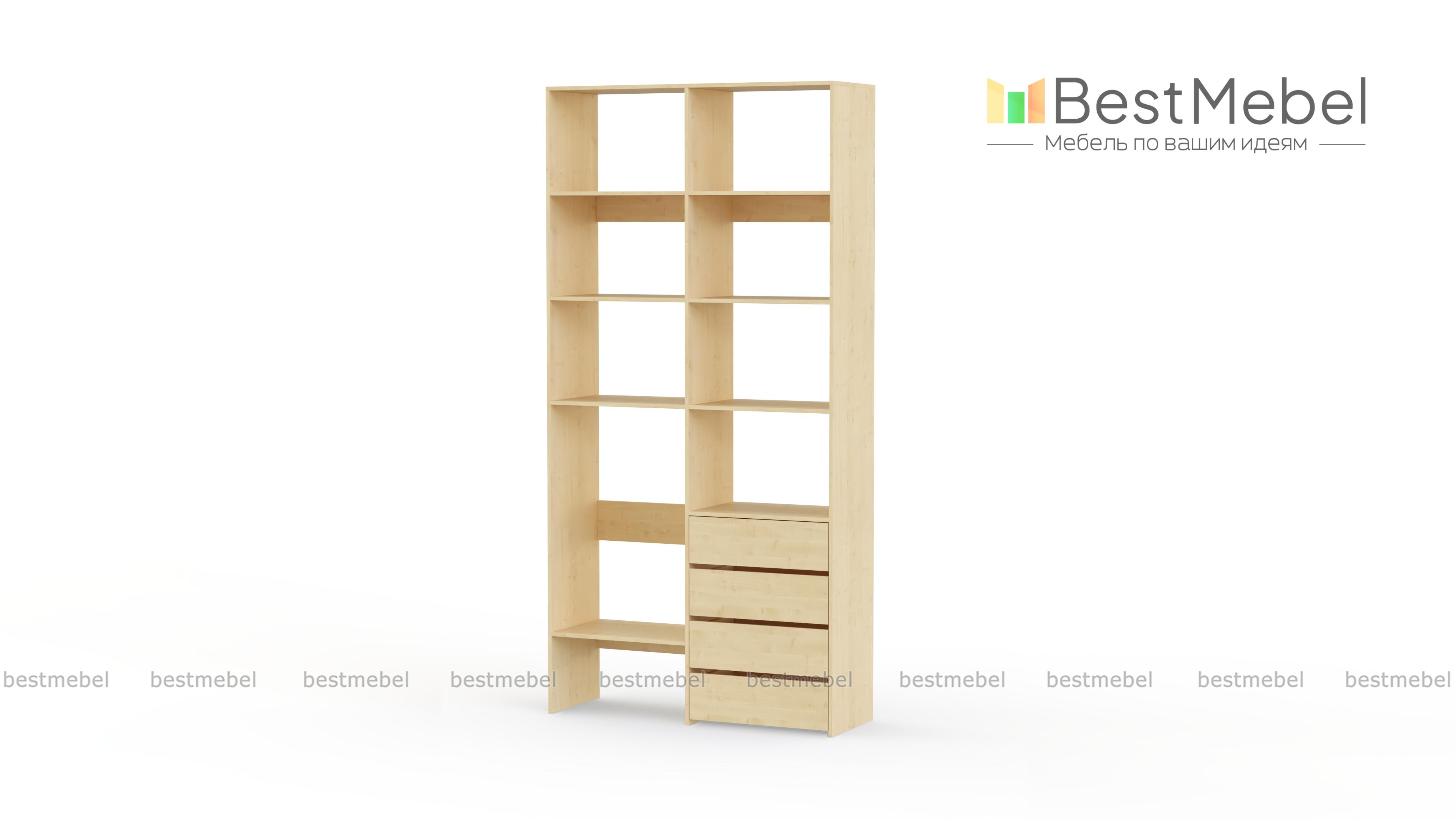 Стеллаж для одежды Мирта 4 BMS – практичное решение для гардеробной, детской комнаты или спальни. Лаконичный современный дизайн сочетается с надежной конструкцией из устойчивой к повреждениям ламинированной плиты. Открытые секции разной высоты помогут вам разместить как небольшие, так и габаритные вещи, а для мелочей предусмотрены четыре выдвижных ящика. Купить стеллаж для одежды Мирта 4 BMS приглашаем в наш интернет-магазин с выбором размеров и цвета по каталогу.