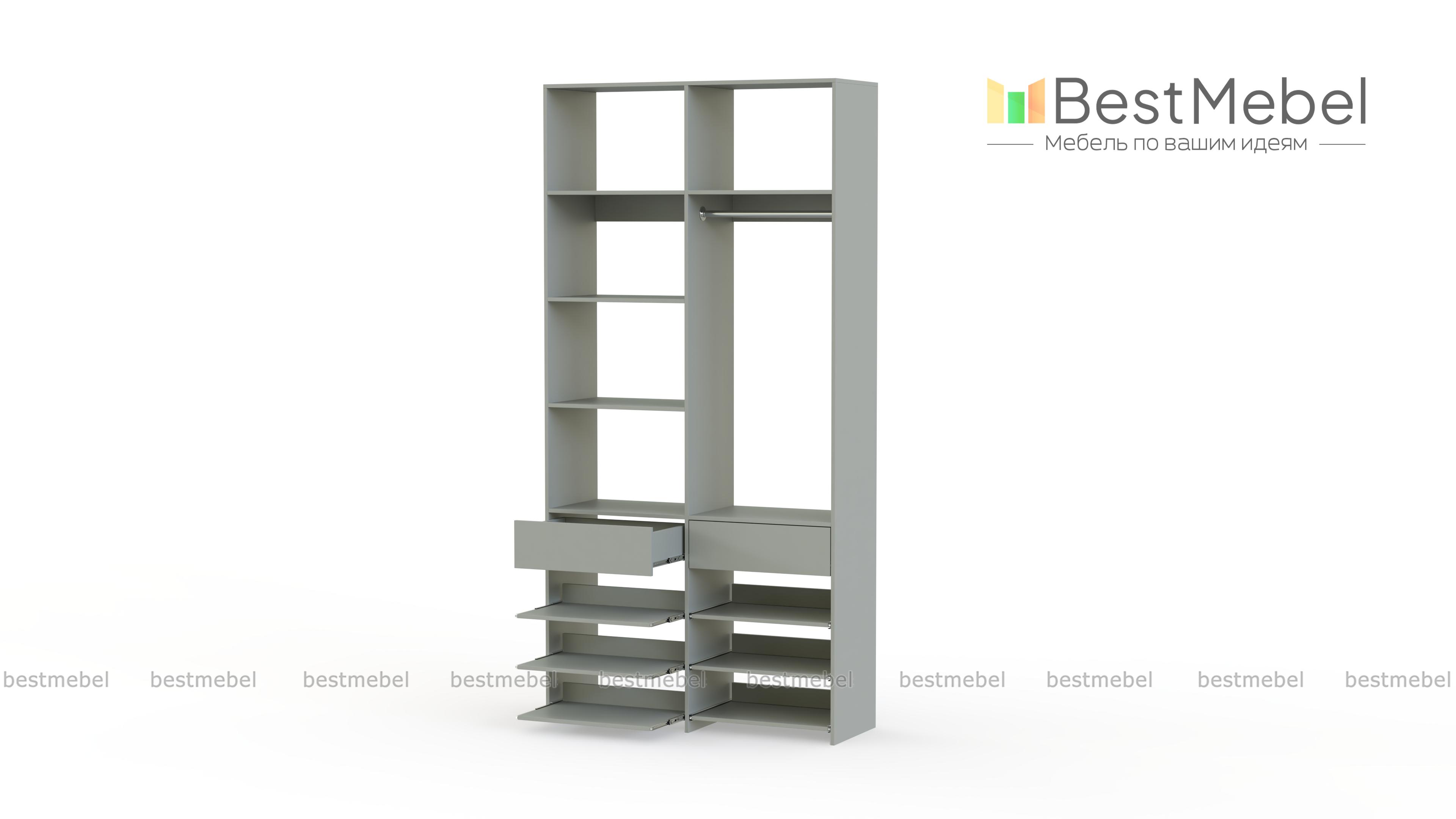 Стеллаж для одежды Мирта 82 BMS эффективно использует ограниченную площадь маленькой прихожей или гардеробной комнаты. В конфигурации со штангой, двумя ящиками, выдвижными и стационарными полками есть место для одежды, обуви и мелких аксессуаров. Ламинированное покрытие стеллажа устойчиво к влаге и появлению царапин, легко моется и эстетично выглядит. Купить стеллаж для одежды Мирта 82 BMS в оттенках нашего каталога и любом удобном размере вы сможете на сайте интернет-магазина.