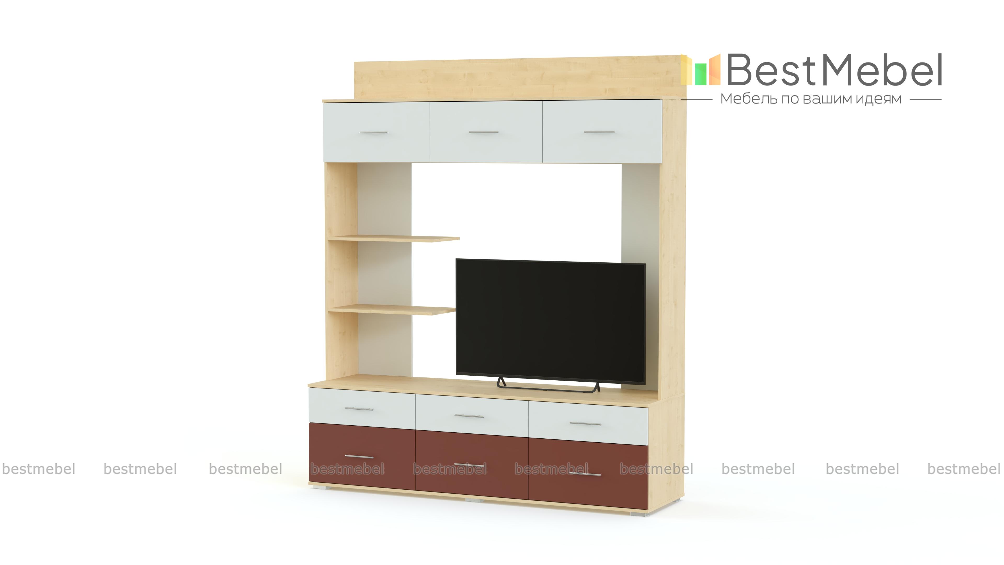 Гостиная-шкаф для ТВ Сити BMS – гибрид практичной, многофункциональной мебели. Он украшает комнату, хранит всё необходимое и позволит создать небольшой домашний кинотеатр. Конструкция состоит из девяти выдвижных ящиков. В них можно хранить бельё, а их вместительность позволяет заменить в доме шкаф. Дополнительные места создают центральные и верхняя полка. «Сердце» изделия имеет огромное пространство. Здесь предлагается организовать зону отдыха и установить телевизор со всей необходимой аппаратурой. Обратите внимание на цветовую гамму, она визуально преображает помещение и делает его комфортным. У нас, Вы можете изменить некоторые данные мебели, чтобы удачно обустроить гостиную или спальню. Купить гостиную-шкаф для ТВ Сити BMS по низкой цене можно в нашем магазине.