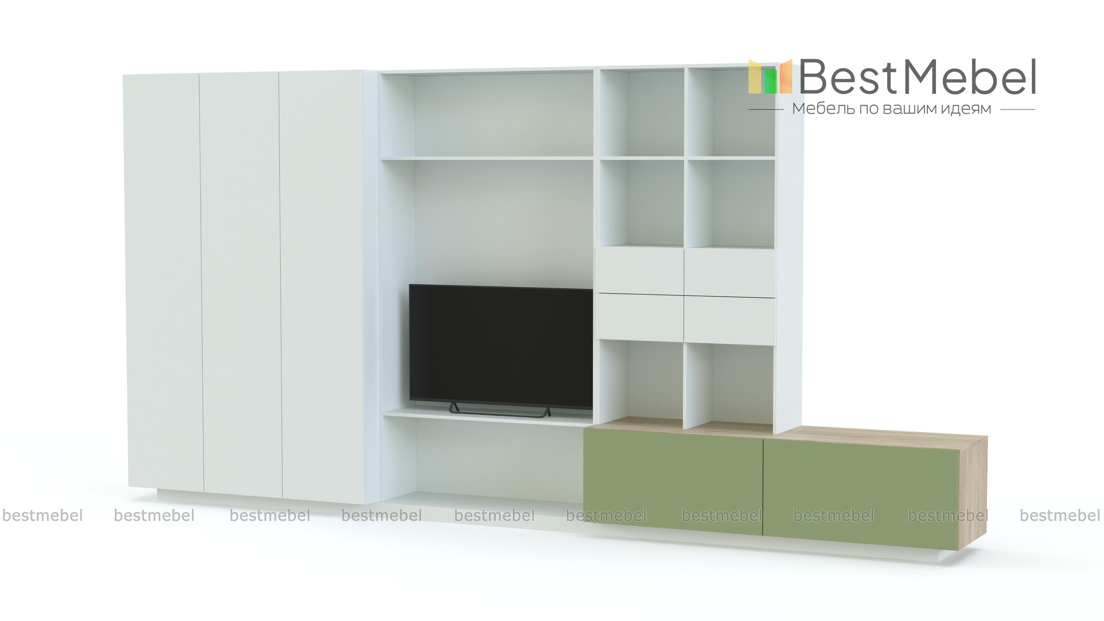 Стенка в гостиную Модерн 33 BMS эффектно сочетает в оформлении древесные тона и белый с ярким цветным акцентом. Крупногабаритная модель станет практичным дополнением и элементом дизайна гостиной в стиле минимализм. Оборудованная секцией под ТВ, выдвижными ящиками, глухими и открытыми полками для книг, домашнего текстиля и бытовых мелочей, стенка дополнена широкой тумбой, на которой смогут разместиться предметы декора. Купить стенку в гостиную Модерн 33 BMS приглашаем к нам в интернет-магазин по лучшей цене.