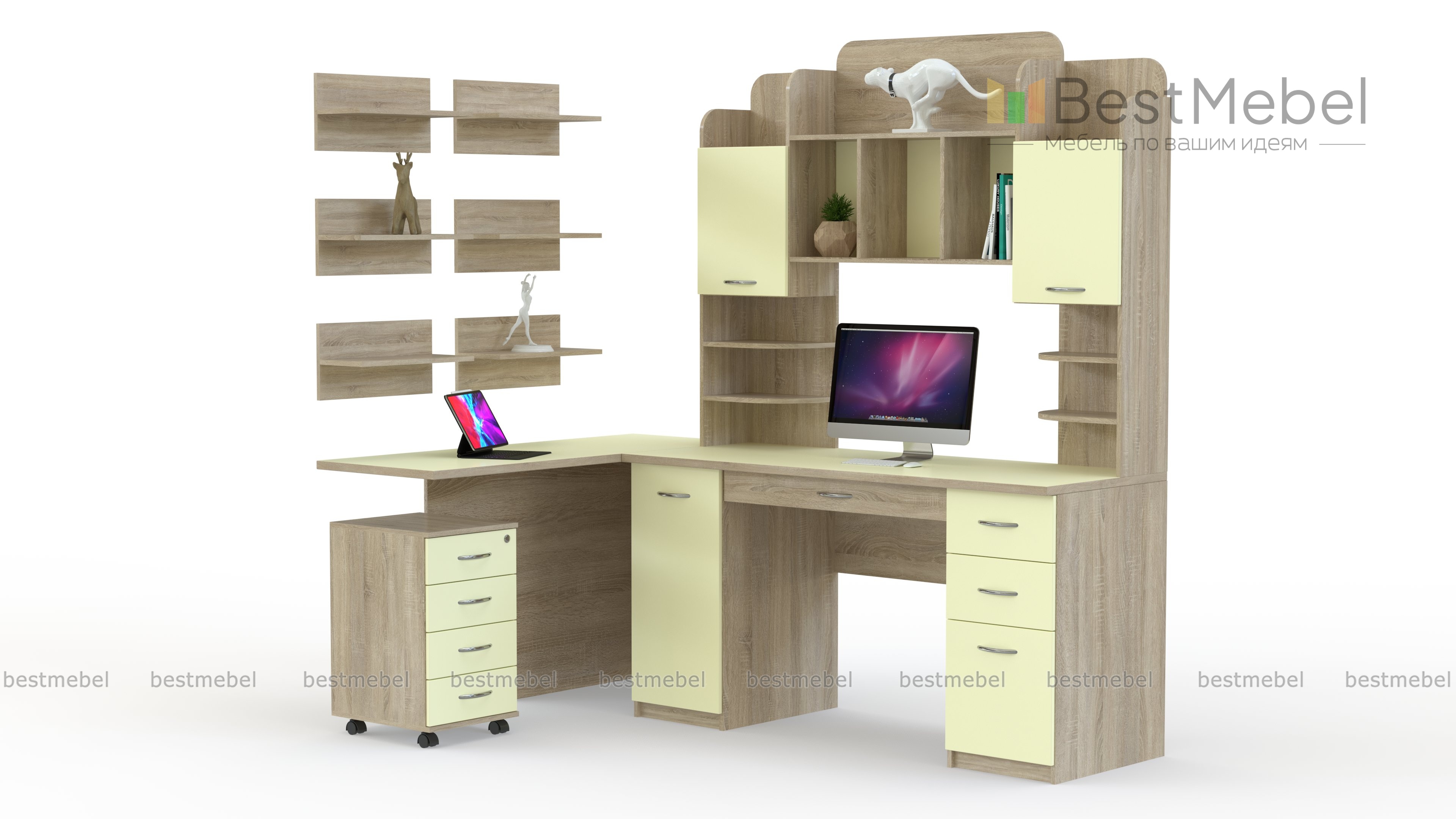 Компьютерный угловой стол Брюгге BMS – это многофункциональная модель с продуманной до мелочей системой хранения, которая позволит разместить под рукой все необходимое для учебы или работы. Двухтумбовый стол с выдвижным ящиком для мелочей дополнен надстройкой с разноплановыми отделениями, просторной столешницей, увеличивающей рабочую поверхность, мобильной тумбой и навесными книжными полками. Широкий выбор цветовых решений поможет гармонично вписать стол в интерьер. Купить компьютерный угловой стол Брюгге BMS приглашаем в наш интернет-магазин по доступной цене.