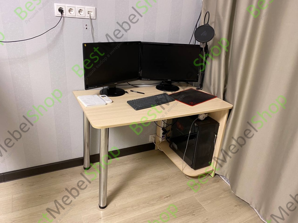 Отличный стол, за такие деньги - просто супер.Брал со стандартными размерами по всем габаритам (ШВГ 90х76х60). Сидеть удобно, даже если закинуть ногу на ногу.Не стал собирать полностью, так как мне это было не нужно, прикрутил только ножки (их в комплекте было 4, что просто прекрасно). По телефону попросил менеджера прорезать дырку для шнуров (см. фото) - сделали бесплатно. Ножки можно отрегулировать по высоте, чтобы стол не шатался даже на неровной поверхности. Единственный недостаток - кромка стола немного режет руки, так как острая, но планирую шлифануть, и проблемы не будет.Короче, все супер, спасибо большое!