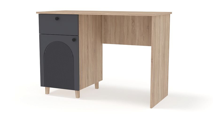 Письменный стол Рене 1 BMS с рифленым фасадом и ножками подходит для меблировки комнаты школьника или кабинета. Выдвижной ящик под столешницей и распашное отделение с полками помогают убрать мелочи, поддерживая порядок на рабочем месте. Благодаря актуальной палитре и стильному рельефу стол гармонично вписывается в современные интерьеры. Купить письменный стол Рене 1 BMS с индивидуальным подбором цвета и размеров вы сможете в нашем интернет-магазине.