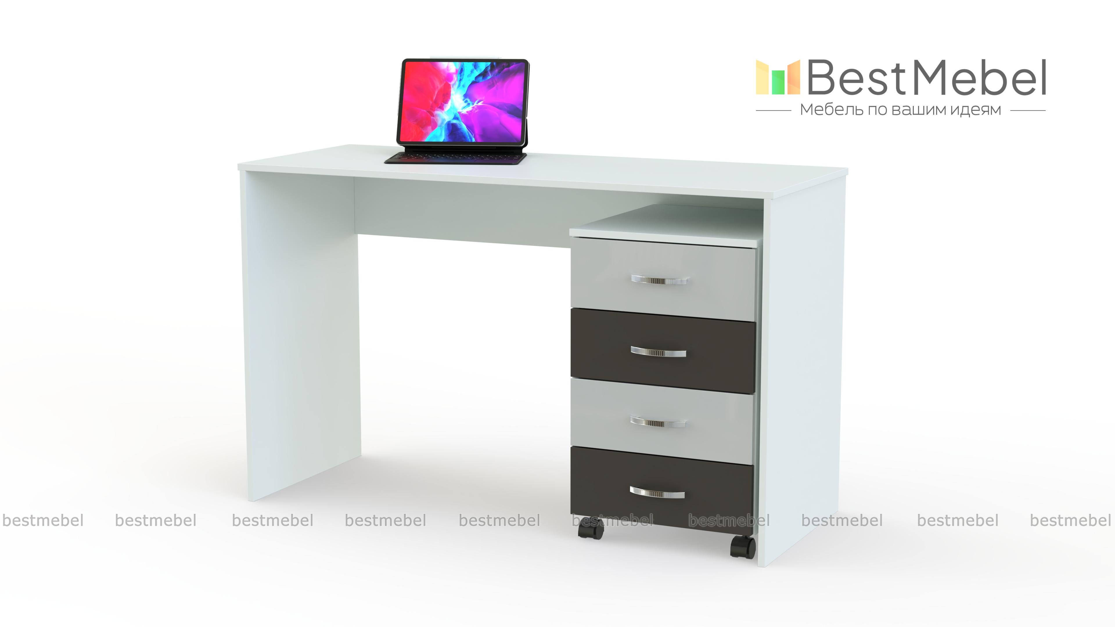 Стол Детский-5 BMS – современная модель для учебы и творческих занятий, простая и функциональная. Письменный стол с классической прямоугольной столешницей и широкими боковинами дополнен выкатной тумбой с выдвижными ящиками, которую вы сможете установить с любой стороны и разместить под рукой канцелярские принадлежности. Экологичные материалы и нейтральная расцветка в светлых тонах с контрастными вставками делают стол отличным вариантом для детской комнаты. Купить стол Детский-5 BMS вы сможете в нашем интернет-магазине.