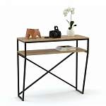 Консольный стол Амадея 1 BMS вы сможете дополнить зеркалом, использовать для работы или в качестве стеллажа. Универсальная модель оборудована прямоугольной столешницей и открытой нижней полкой для удобного размещения уходовых средств, аксессуаров и предметов декора. Выполненный из ЛДСП в крафтовых древесных тонах, столик располагается на прочном фигурном каркасе из металлического профиля. Купить консольный стол Амадея 1 BMS для интерьера в стиле лофт приглашаем в наш интернет-магазин.