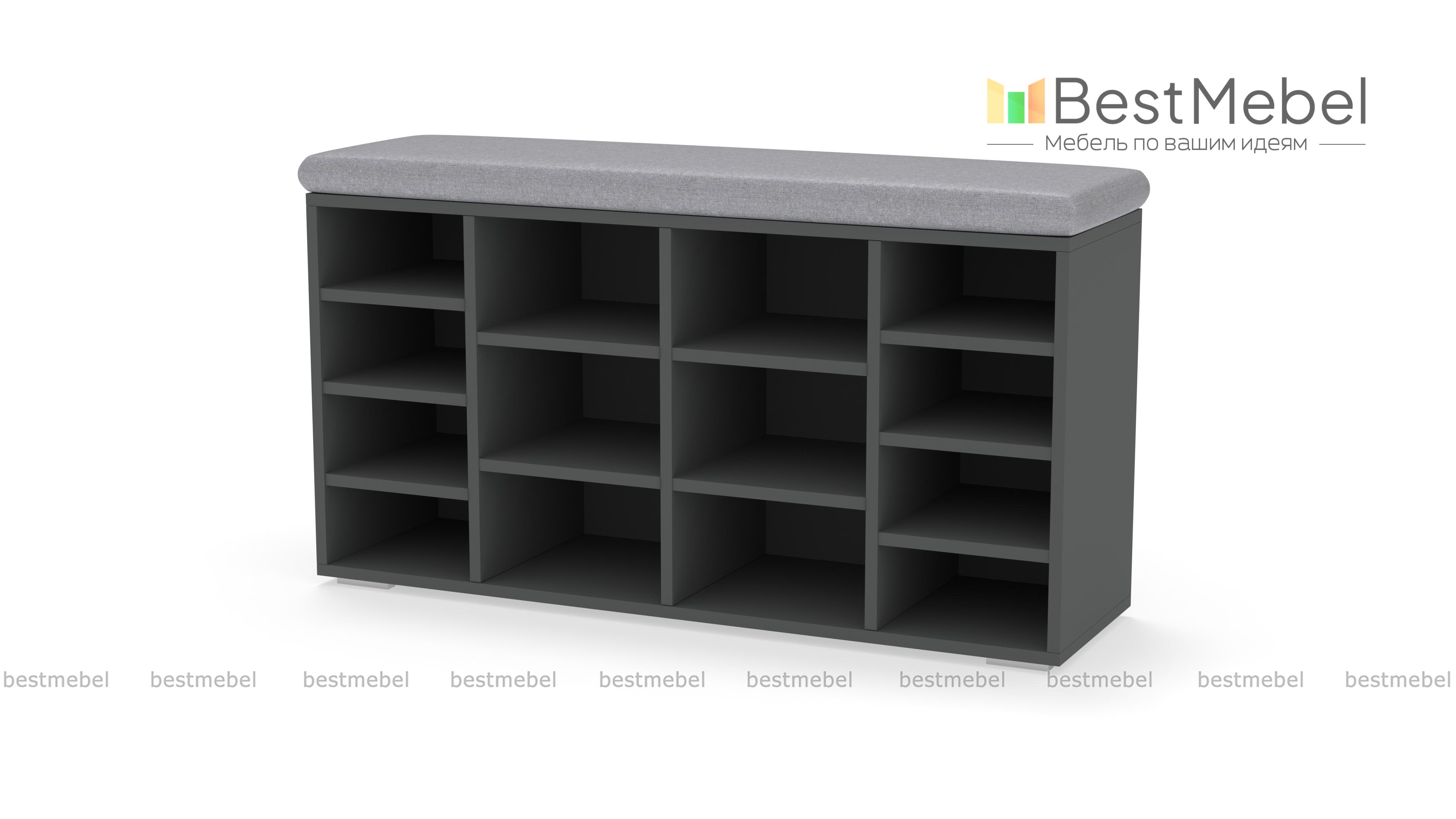 Тумба для обуви Шелф BMS гармонично впишется в современные интерьеры и поможет оптимизировать хранение обуви, уходовых средств и аксессуаров. Широкая низкая модель оборудована нишами разных размеров и просторной столешницей, которую элемент в мягкой обивке превращает в комфортную скамью. Открытая конструкция позволит быстро найти нужную пару и обеспечивает содержимому проветривание. Купить тумбу для обуви Шелф BMS по отличной цене приглашаем в наш интернет-магазин.