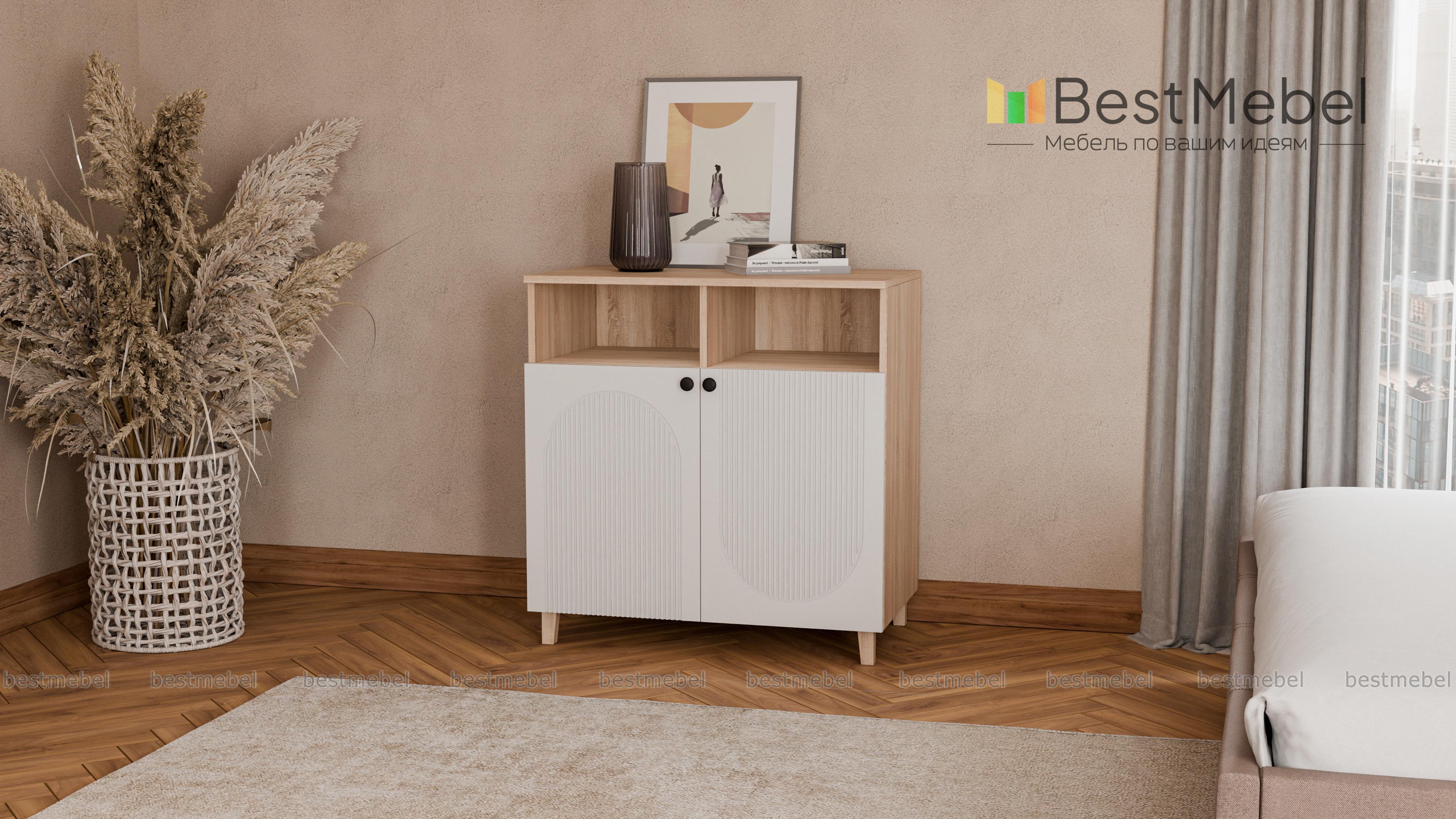 Тумба Рене 2 BMS — компактная, но при этом достаточно вместительная модель в гостиную, детскую комнату или прихожую. Конструкцией предусмотрена разделенная перегородкой ниша для книг и важных мелочей, и распашное отделение с полками для более габаритных предметов. Стильным акцентом в интерьере станет темный фасад из МДФ, украшенный геометричной фрезеровкой. Купить тумбу Рене 2 BMS вы сможете в нашем интернет-магазине, самостоятельно подобрав размеры и цвет.