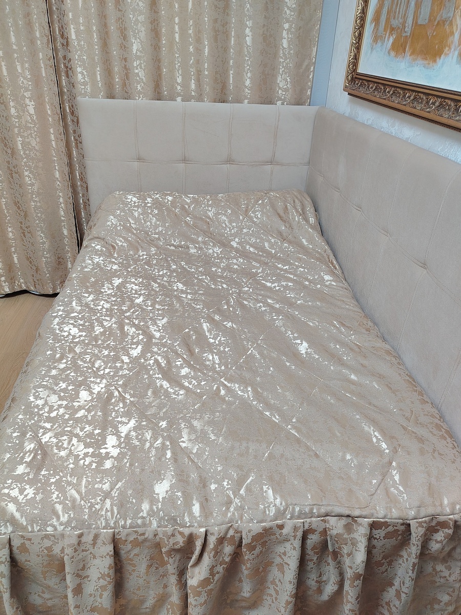 Заказала кровать по своим параметрам. Изготавливали две недели. Привезли день в день. Сборщики собрали на следующий день. Кровать получилась - огонь! Очень хорошо встала в угол и за обои можно не переживать. Она высокая, 55 см. с матрасом 22 см. И это очень радует, ибо не люблю низкие кровати. Механизм очень простой и надёжный, а в ящик помещается половина взрослого мамонта. Она очень красивая, мягкая, тёплая. На вид хрупковата, но с места не сдвинешь, стоит, как монолит. Пока не поняла, как под ней убирать пыль, но решу со временем. Благодарна Бэст-Мебели за этот вариант кровати, потому что это реально находка для тех, кто предпочитает угловое размещение. Да, качество - не придерешься. Всё отлично.